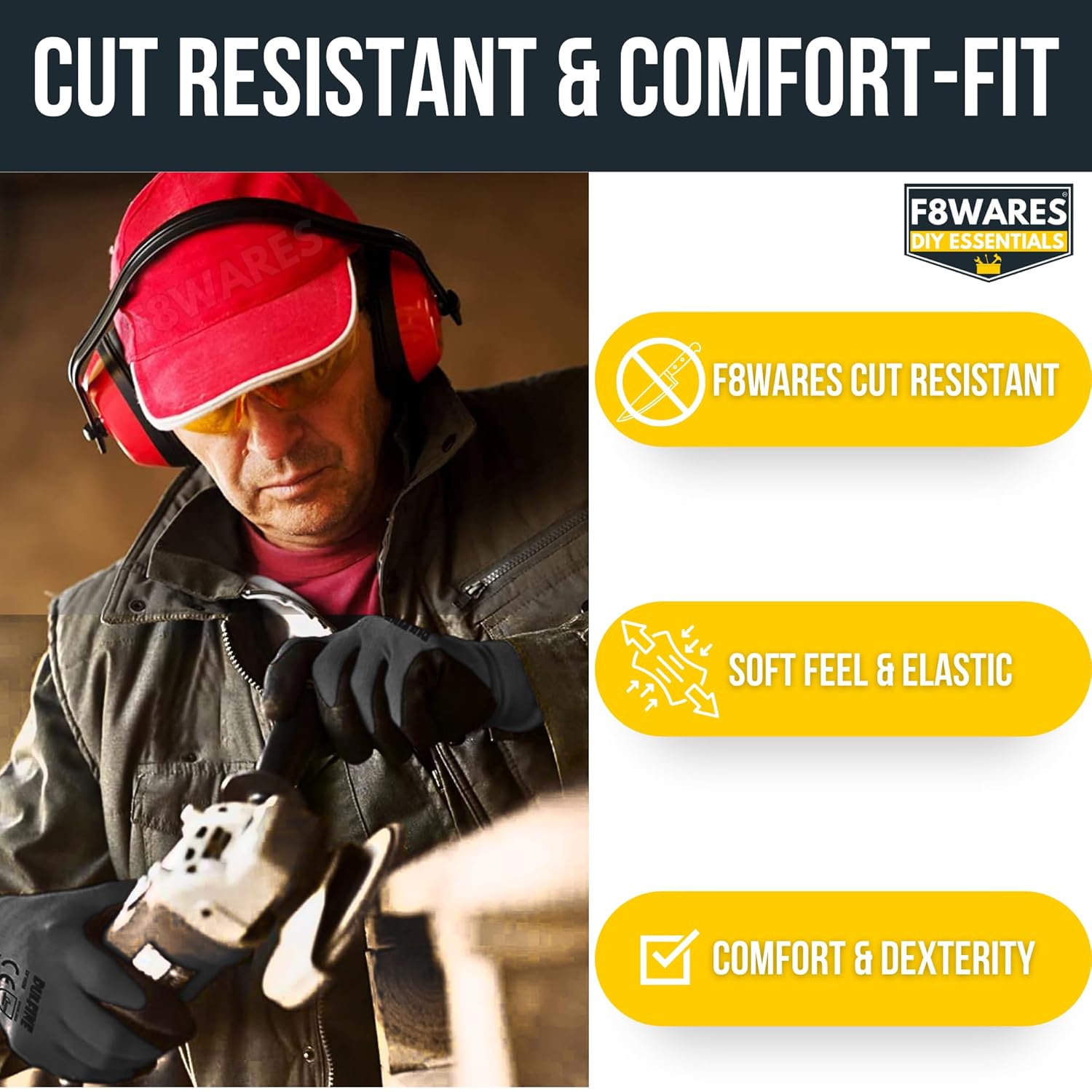 ✅ CUT RESISTANT GLOVES : Made from anti-cut & Resistance proof Coated with Latex for extra protection designed as mechanic gloves for men workshop or industrial gloves for men & construction gloves for men