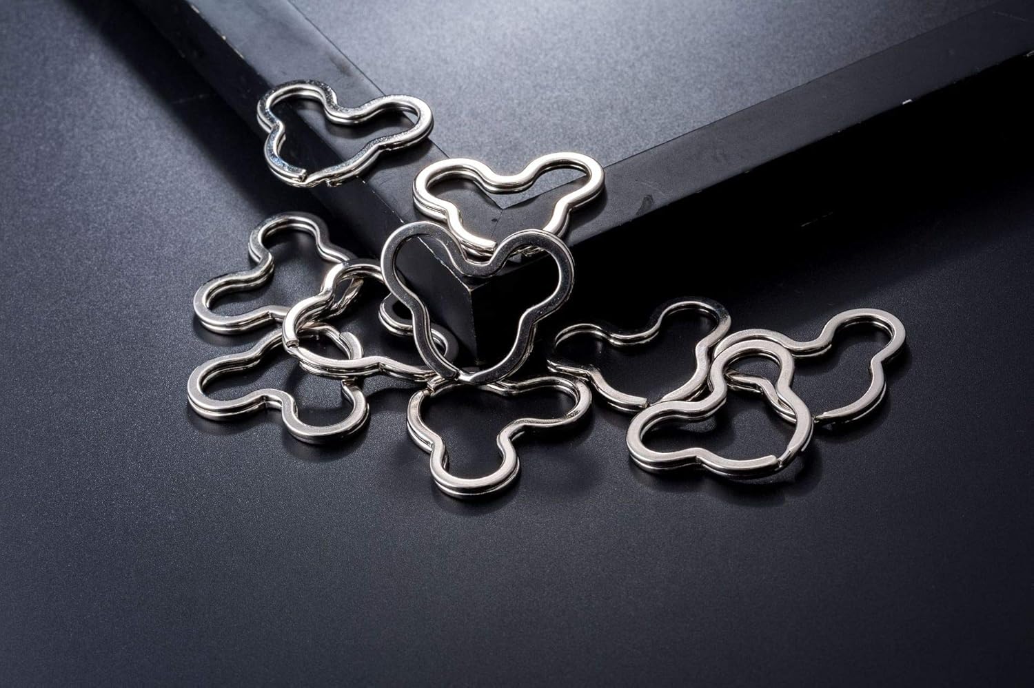 10pcs Creative Flat Key Ring DIY Keychain Accessories Metal Key Split Ring Silver Mickey Mouse Shape