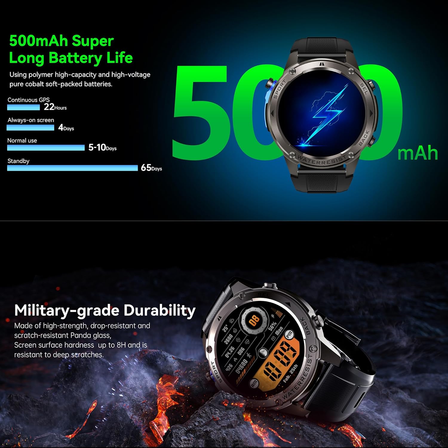 ➤【Ultra Long Life 500mAh Battery】A robust 500mAh battery keeps you connected for longer. Enjoy up to 24 hours of continuous GPS tracking, 4 days with the always-on display, or 5-10 days with regular use. In standby mode, this powerhouse can last up to an impressive 65 days, ensuring you're always ready for your next adventure.