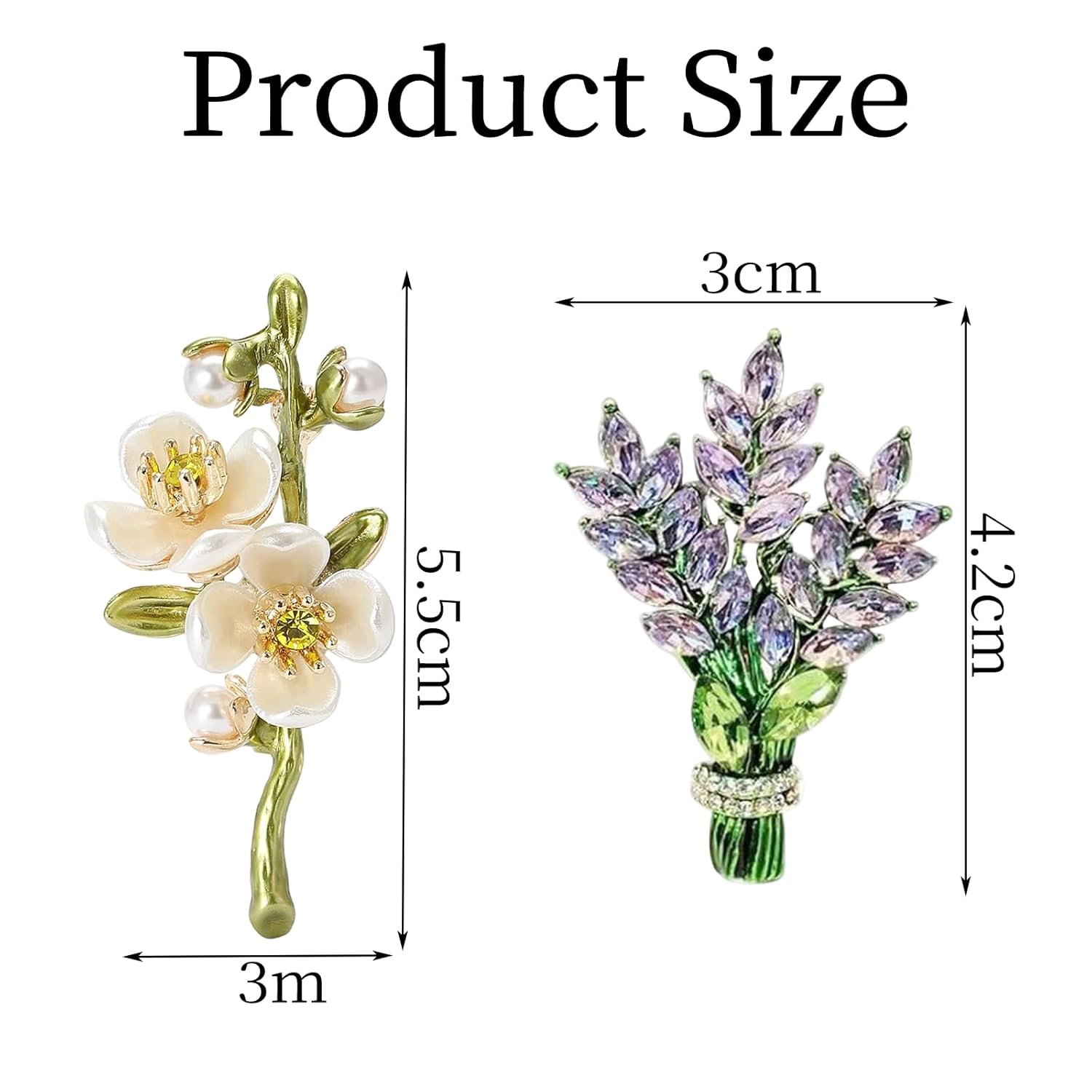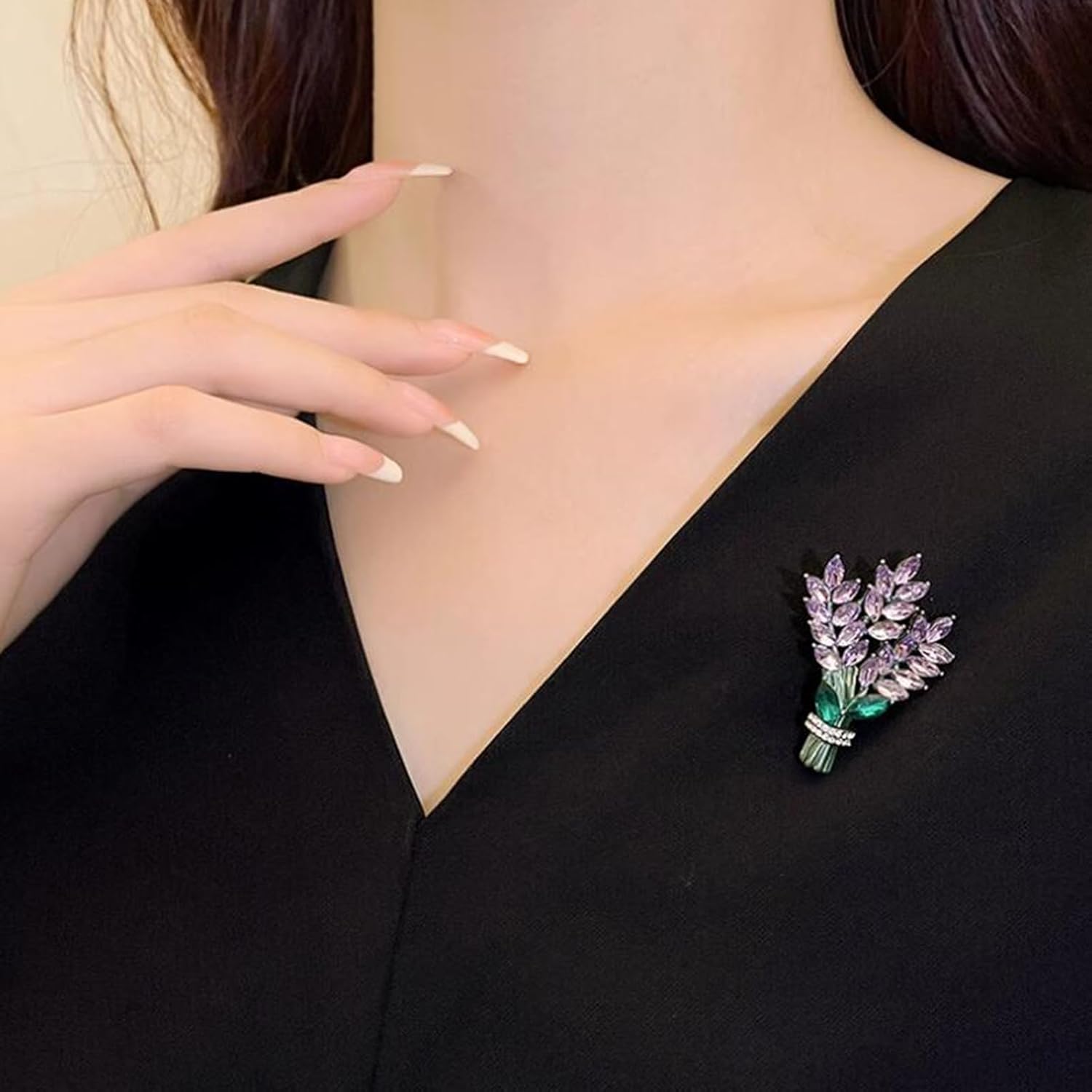 2pcs Brooch Pin For Women Lavender Flower Brooch Pins Crystal Rhinestone Glass Bouquet Brooch Lapel Brooches Jewelry Gift Accessories For Women