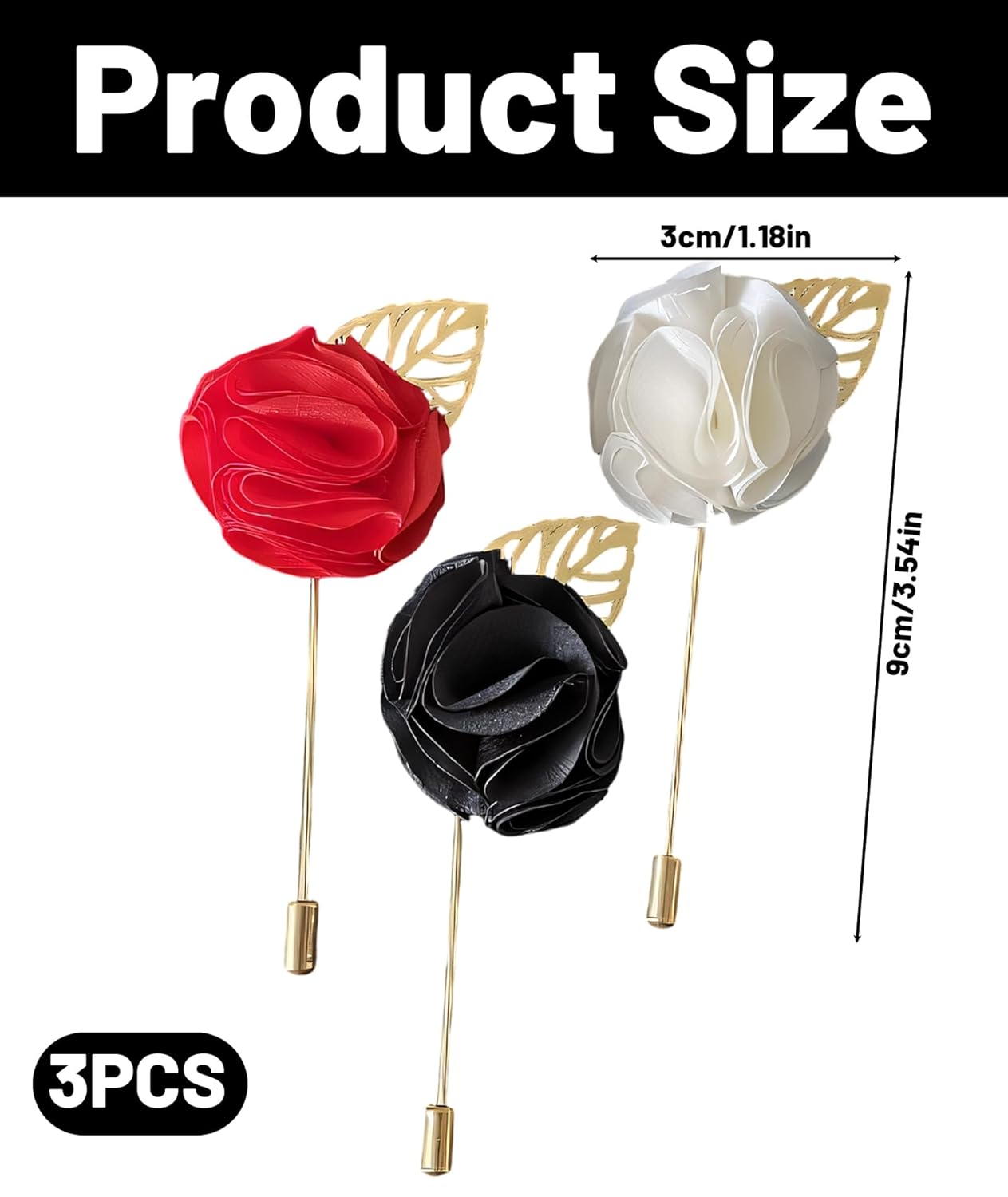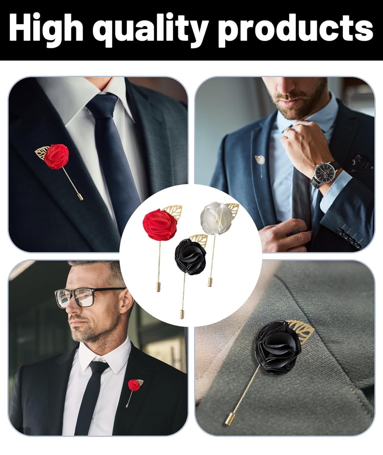 3Pcs Brooch for Men, Lapel Pin for Men Suit, Stylish Accessories for Men, Elegant Saree Pin for Pleats, Anniversary Gift for Husband, Black, Red, White