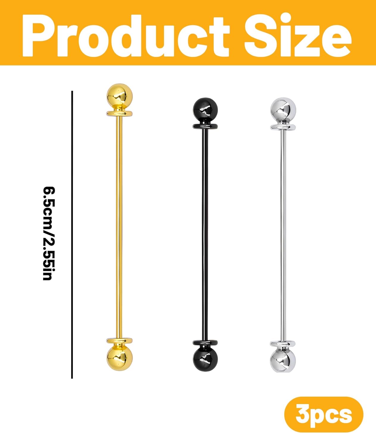 3PCS Collar Stays for Men Shirt Set,Collar Pin for Men Shirt, Lapel Pin for Men Suit, Accessories for Man, Formal Events or Casual Gatherings, 6.5cm Length