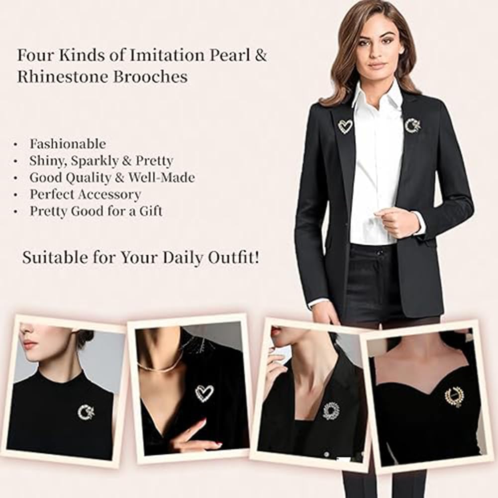 4 Pcs Brooches and Pins for Women Crystal Pearl Brooches Vintage Heart Brooches Elegant Rhinestone Flower Brooch Pins for Women Coats Jackets Wedding Bouquet