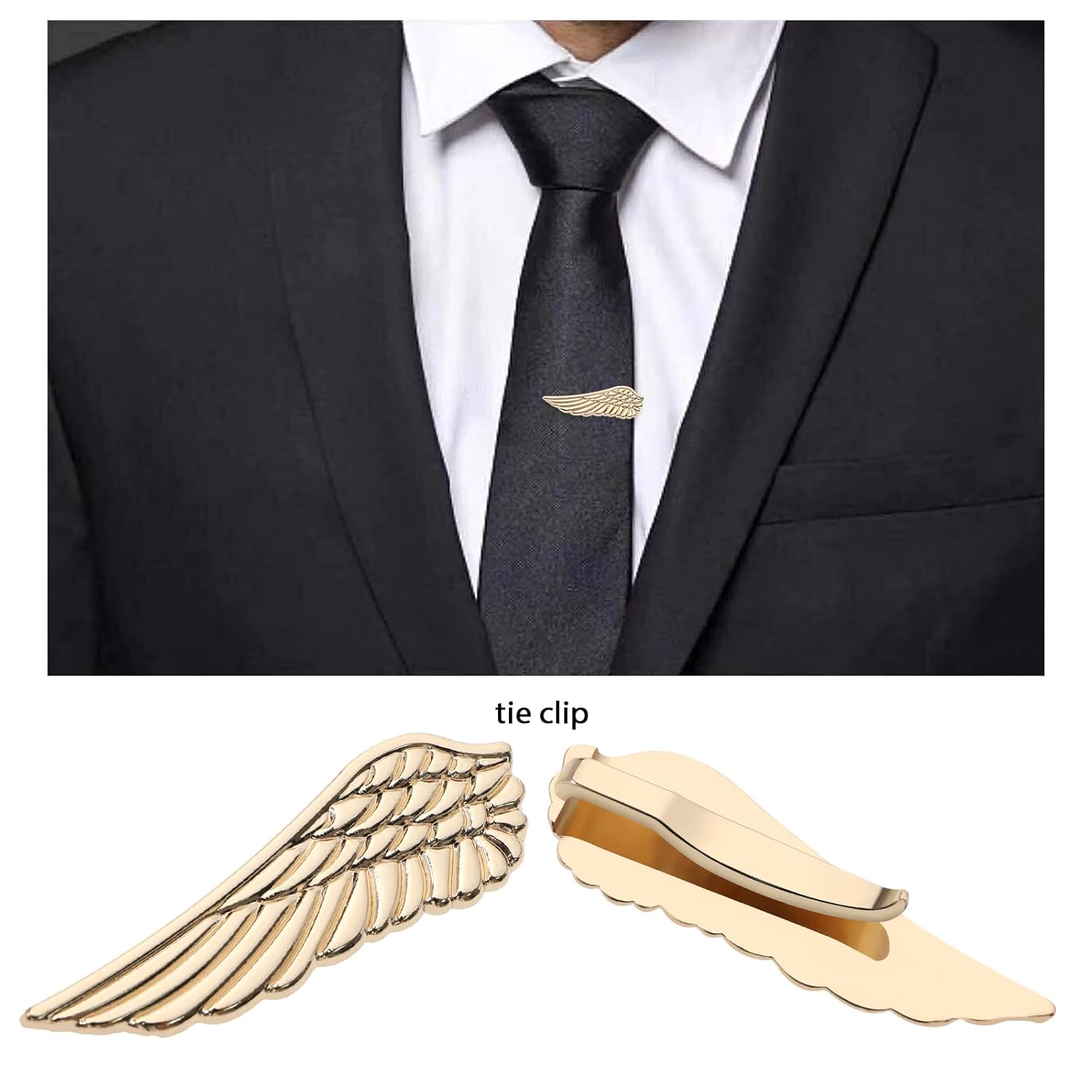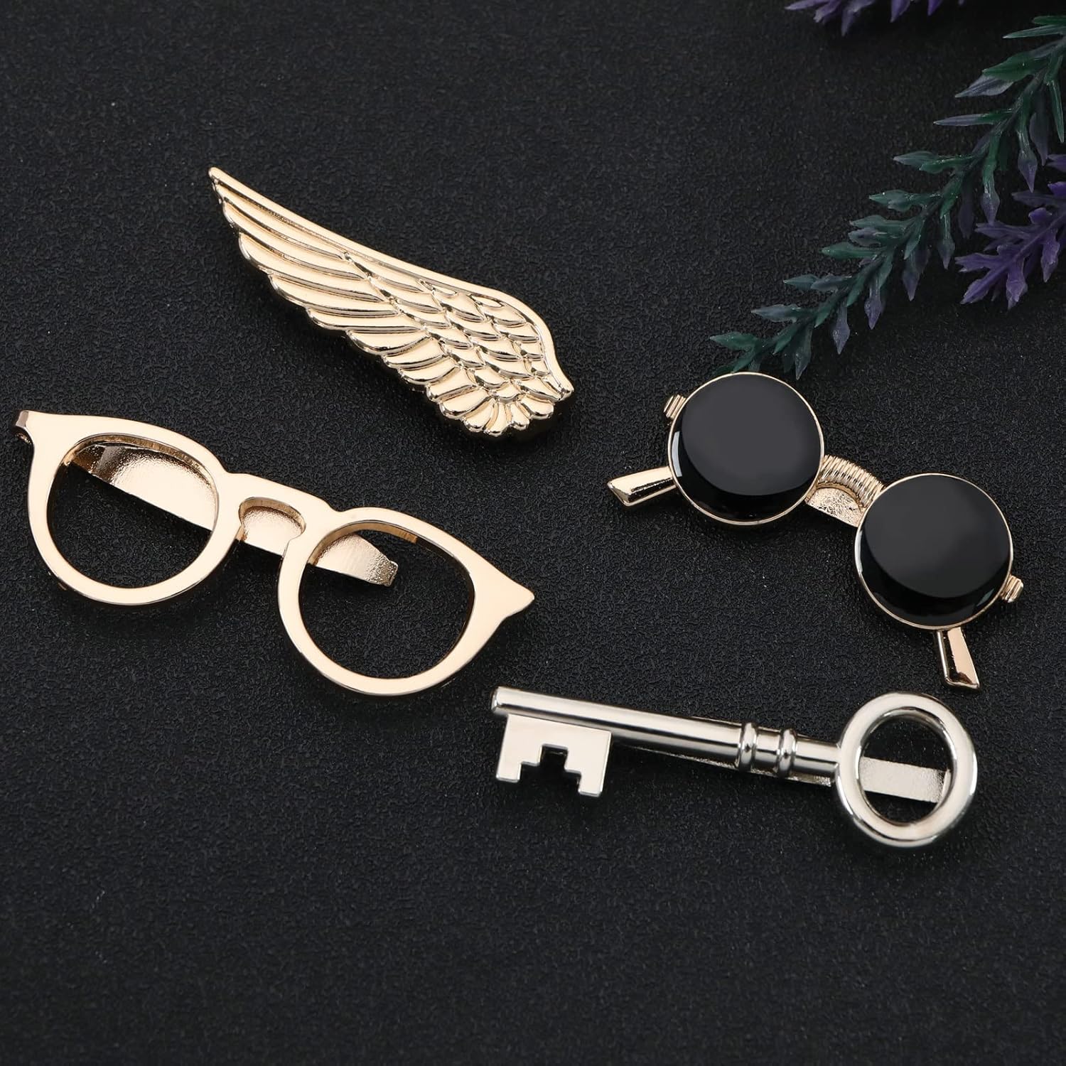 -Package includes 4 pieces of tie clips, 4 different patterns, wing, key, sunglasses and eyeglasses.