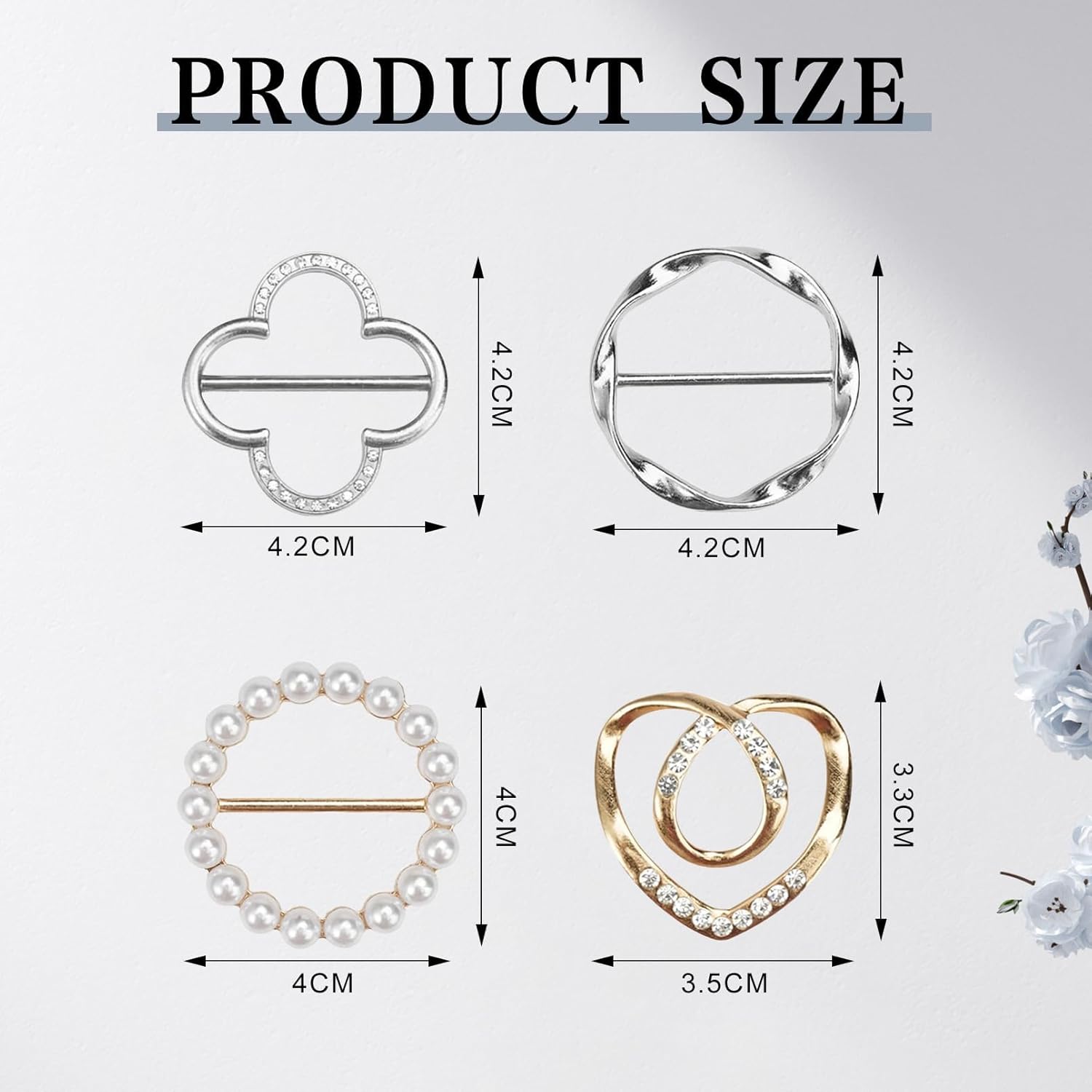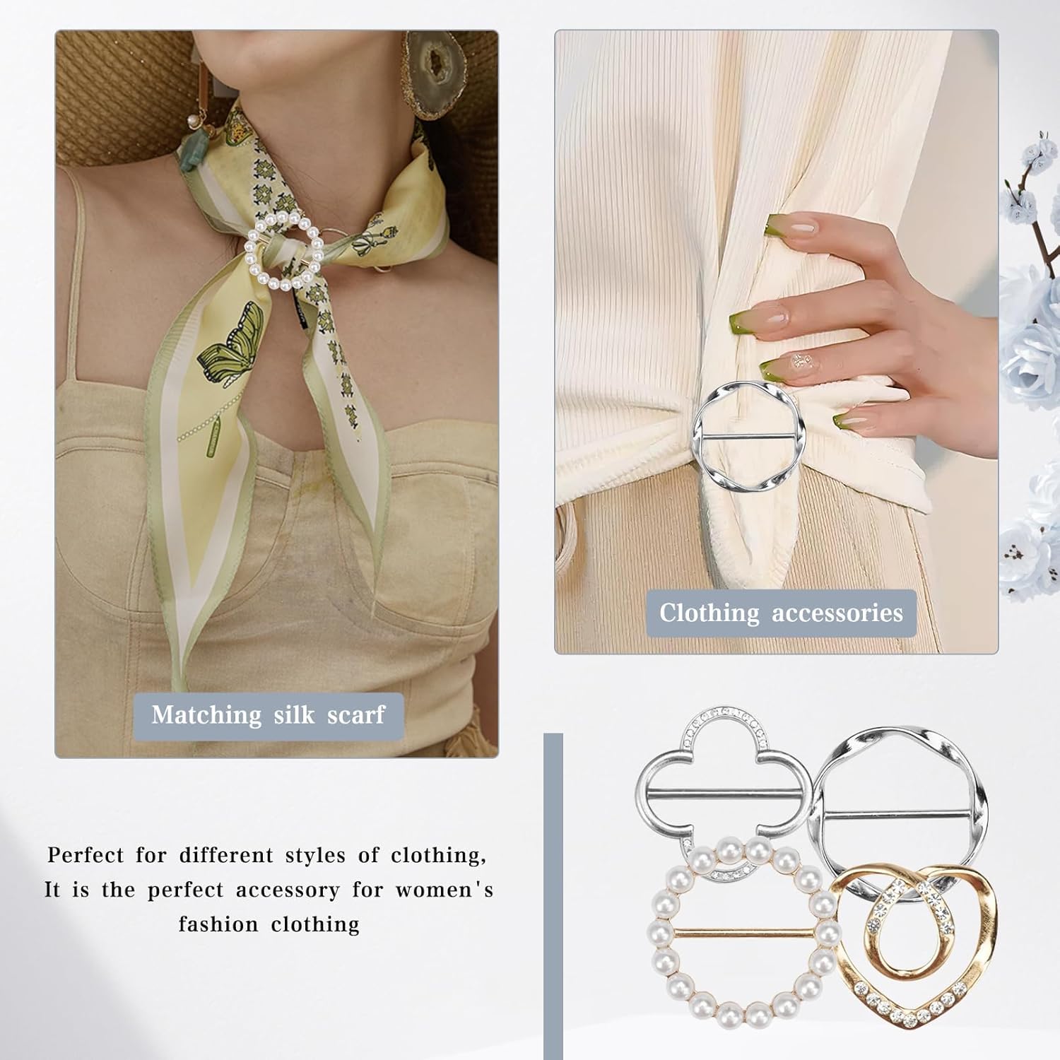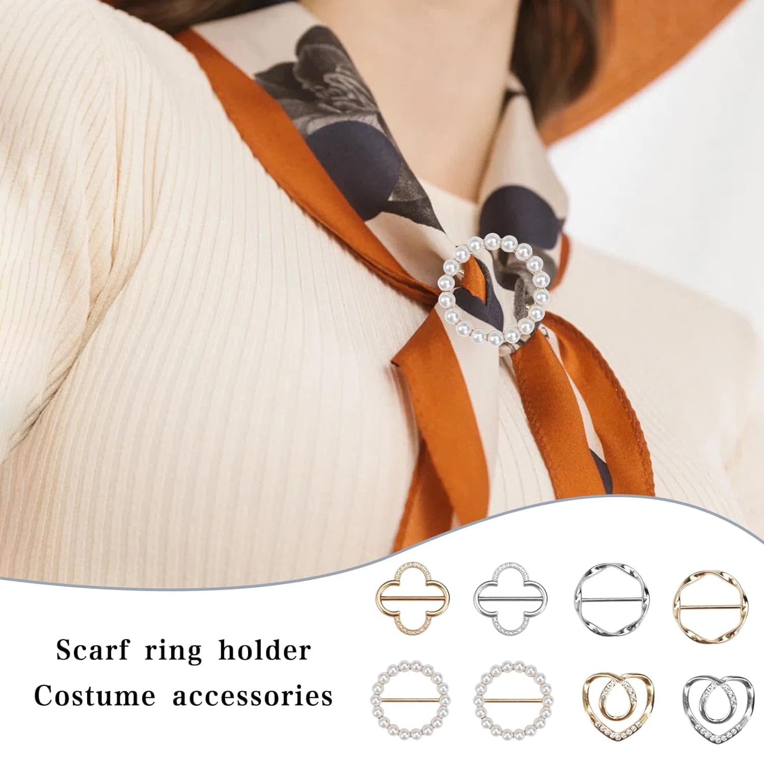 8PCS Scarf Ring Clip,Pearl Scarf Ring Buckle Clips,Circle T-shirt Ties Rings,Fashion Metal Circle Clip for Women Clothing,Clothes Decorative Accessories