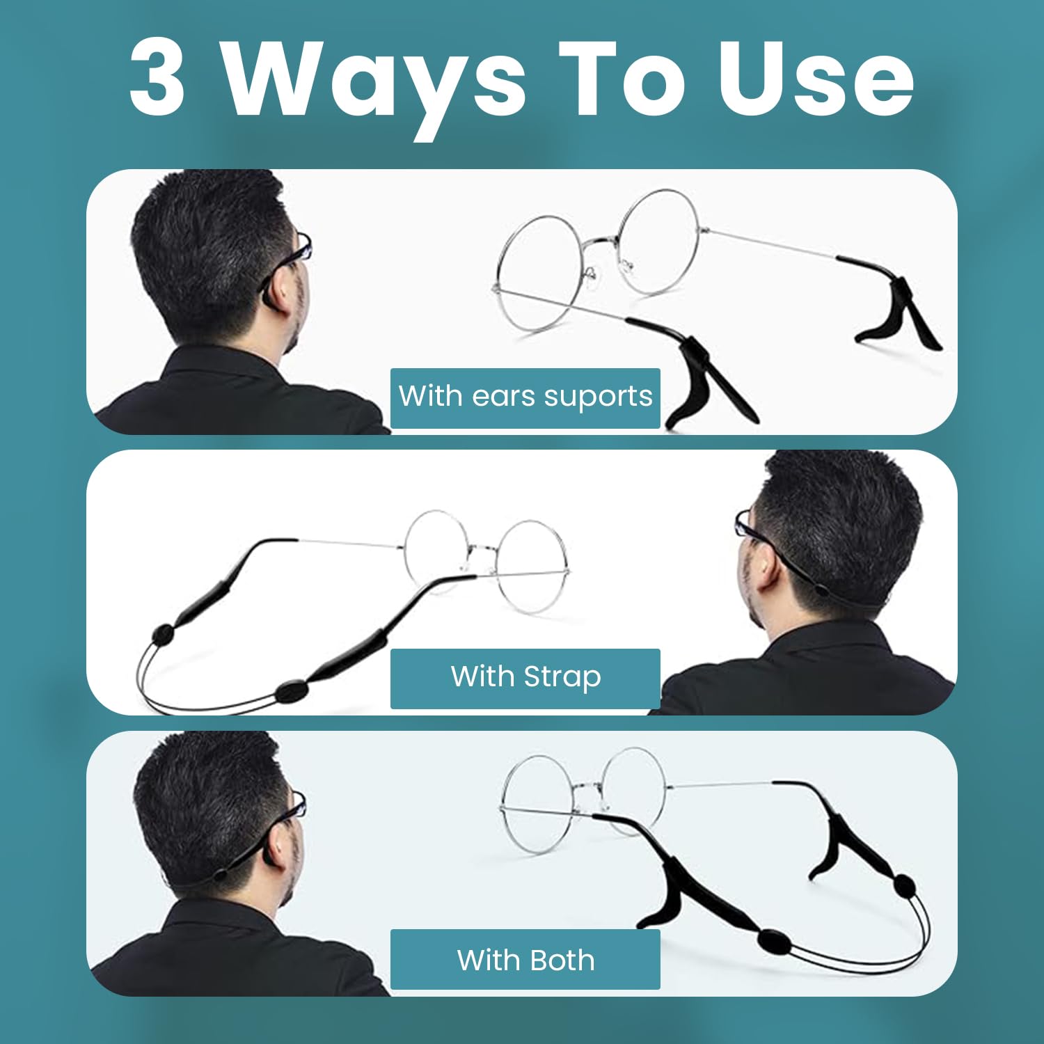 Adjustable Silicone Eyeglass Strap with Ear Grips for Adults | Anti-Slip Specs Holder Strap & Spectacle Retainer Band | Secure Eyewear Band