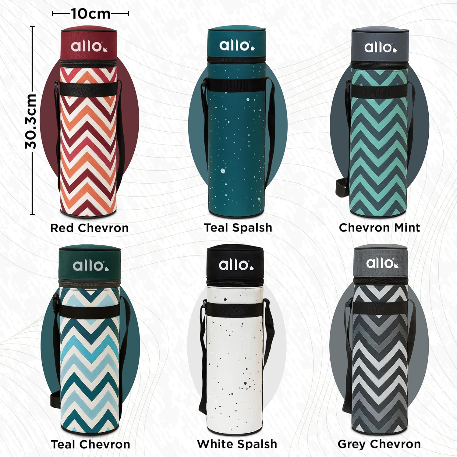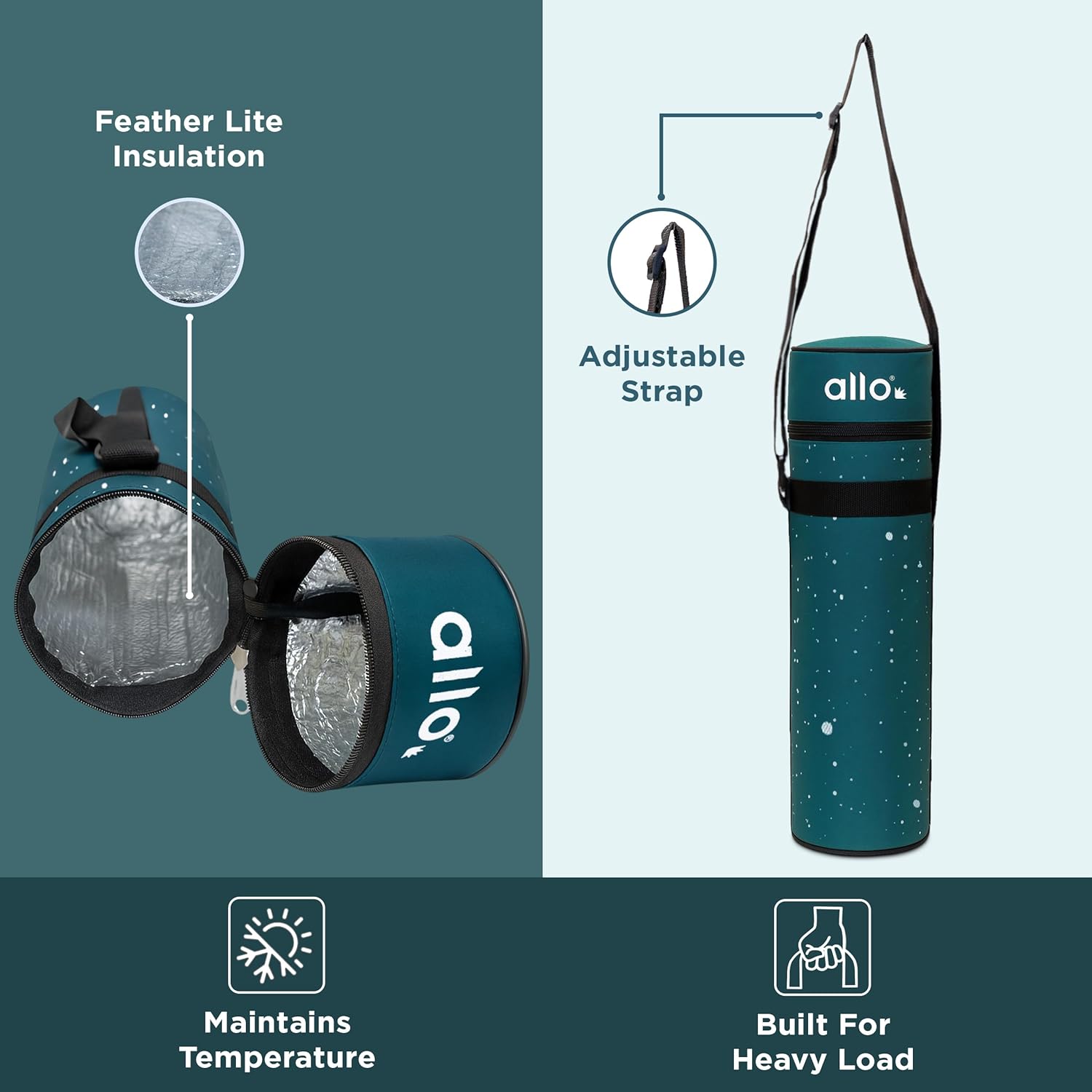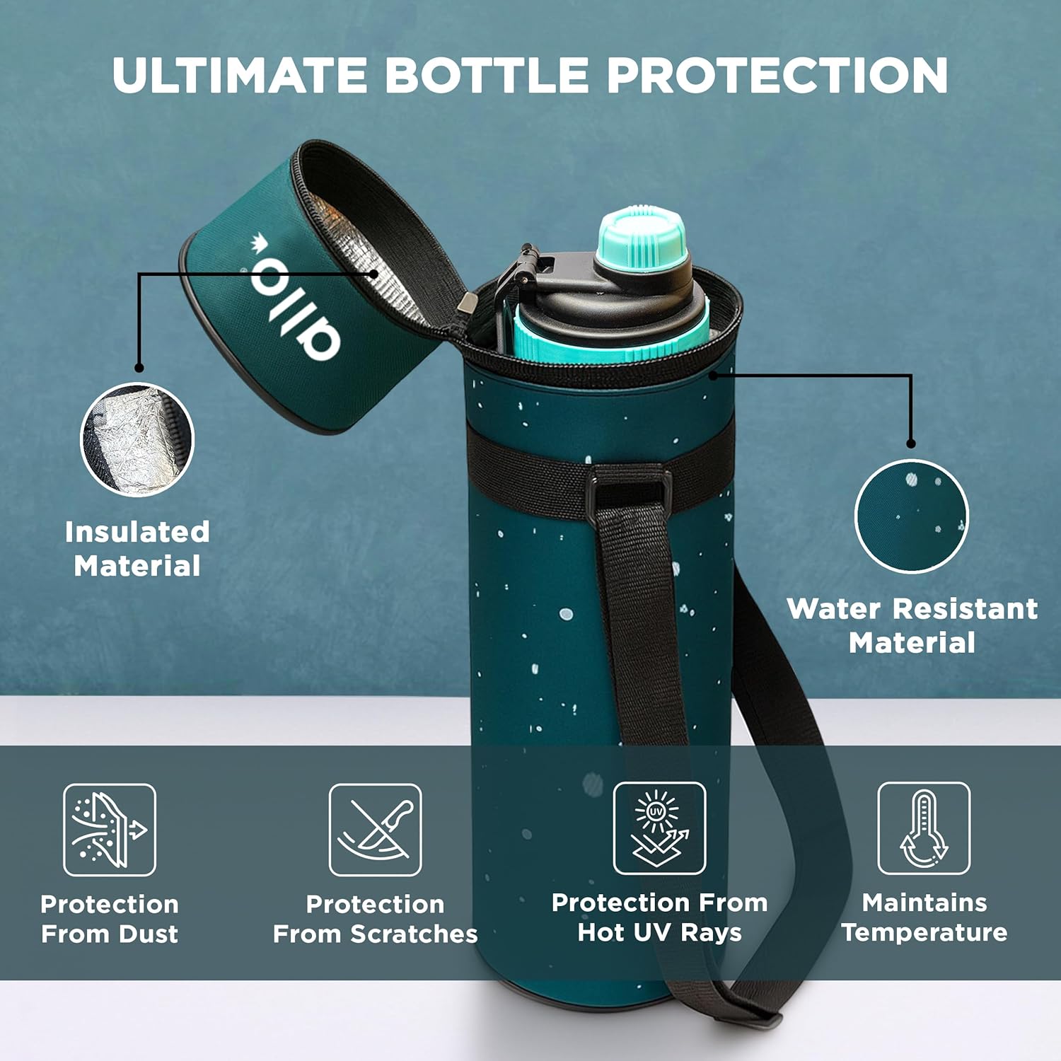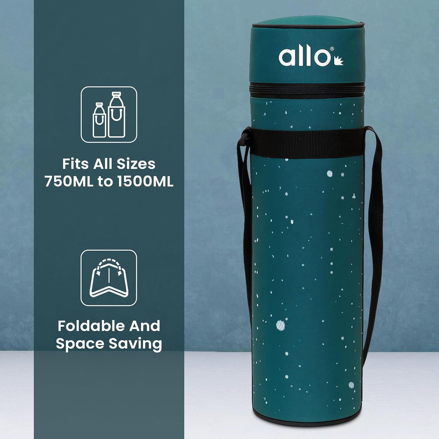 Allo Polyester Thermal Insulated 1L Bottle Cover – Water-Proof Modern Carrier Sleeve with Adjustable Shoulder Handle & Zipper Closure for Travel, Hiking, Office & School, Splash Green