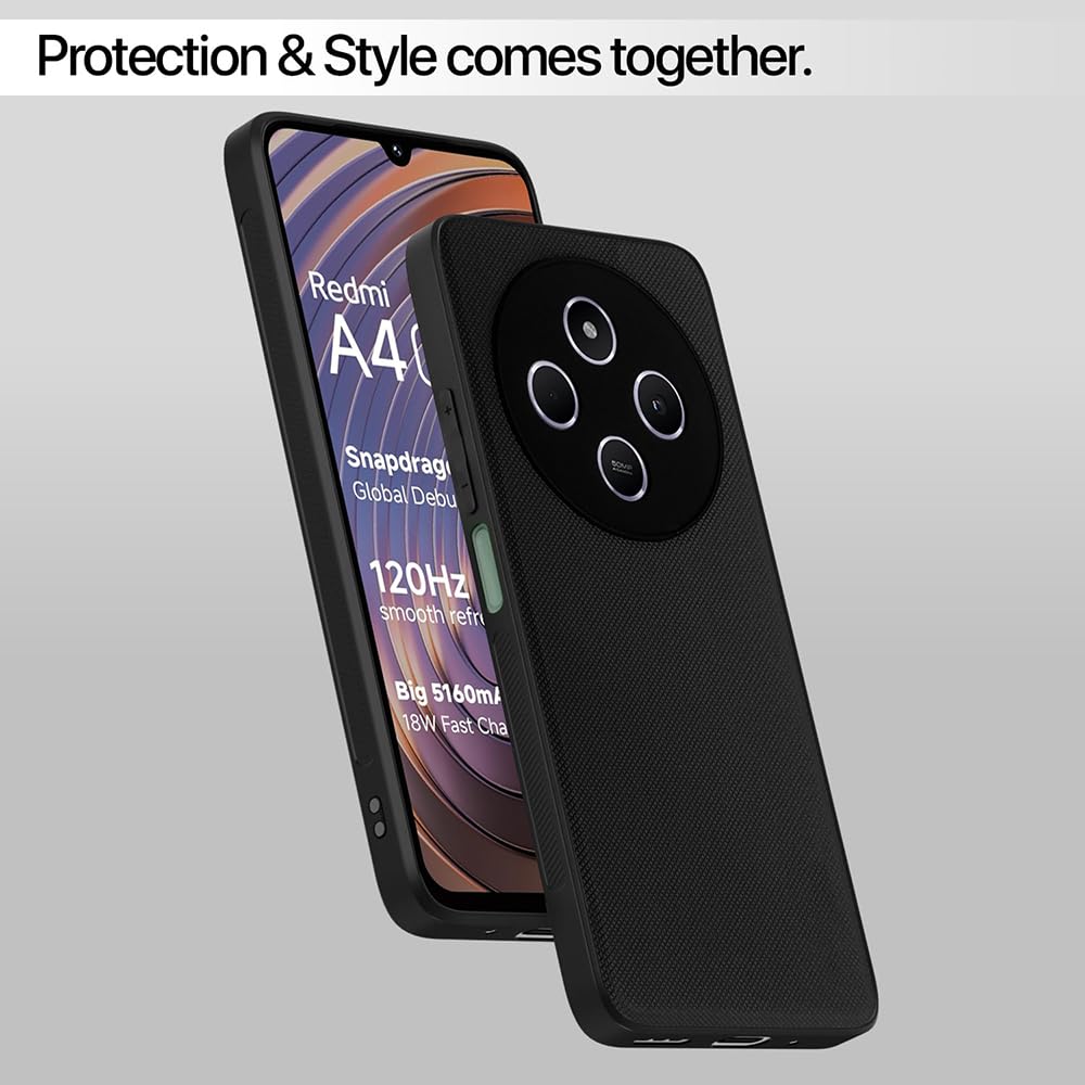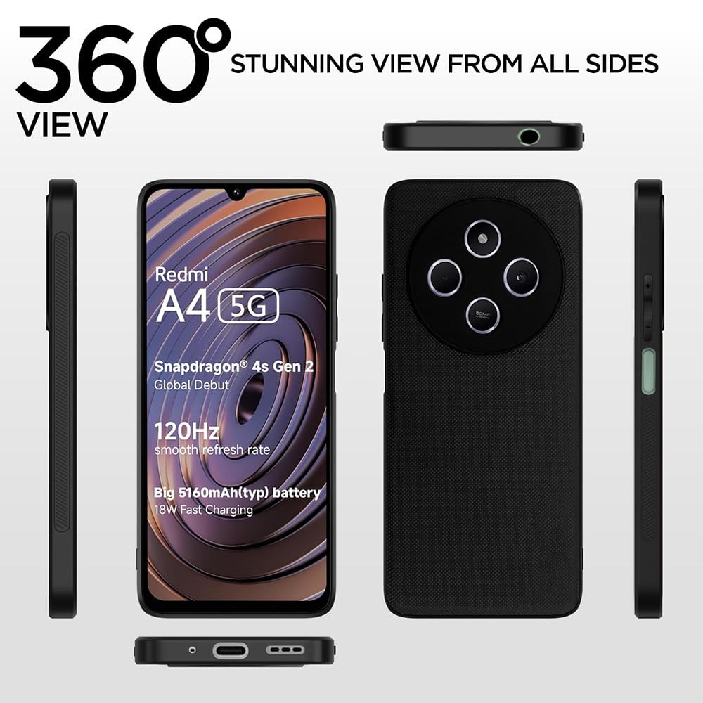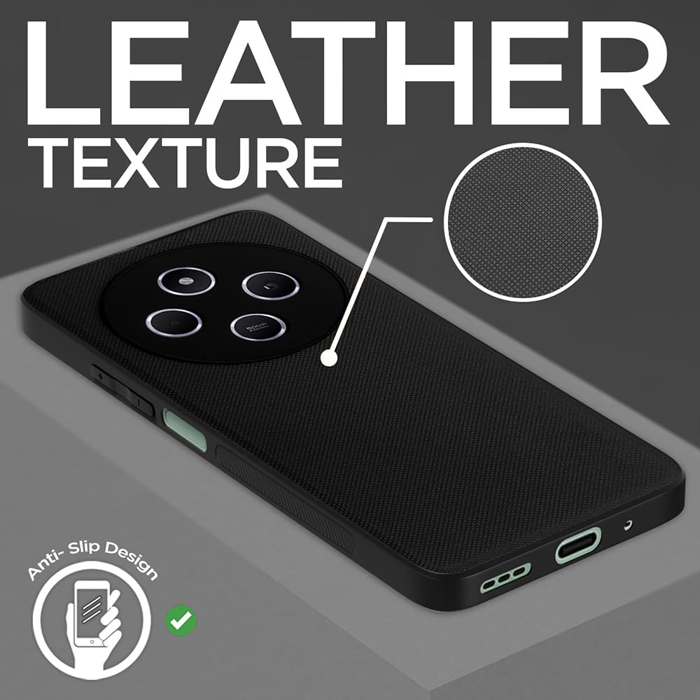 amazon basics Mobile Cover | Premium PU Leather | Full Camera Protection, Raised Edges, Soft-Touch Finish | Slim & Durable Protective Cover for Mi Redmi A4 5G / 14C 5G / 14R 5G / Poco C75 5G (Black)