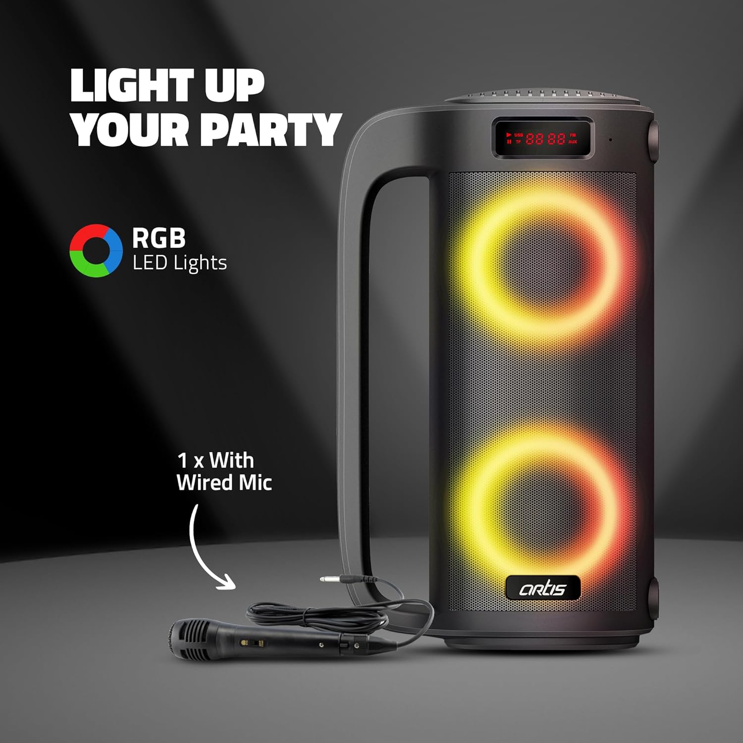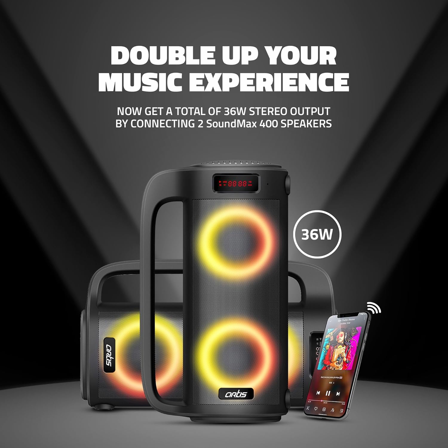 Artis SoundMax 400 Wireless Bluetooth Speaker with USB, FM, Micro TF Card, Aux in, Wired Mic with Supporting Grab Handle (Black) (18 W RMS Output)