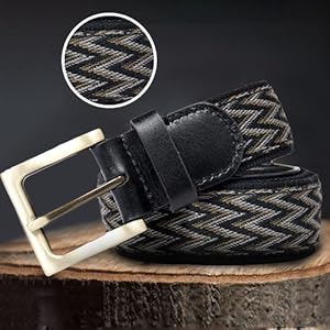 The belt is extremely fashionable and eye catching. The leather belt along with canvas cotton is slightly stretchable. The braided pattern adds a cool touch to the belt.
