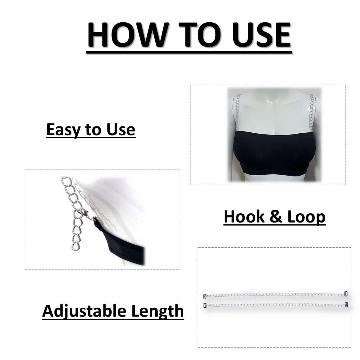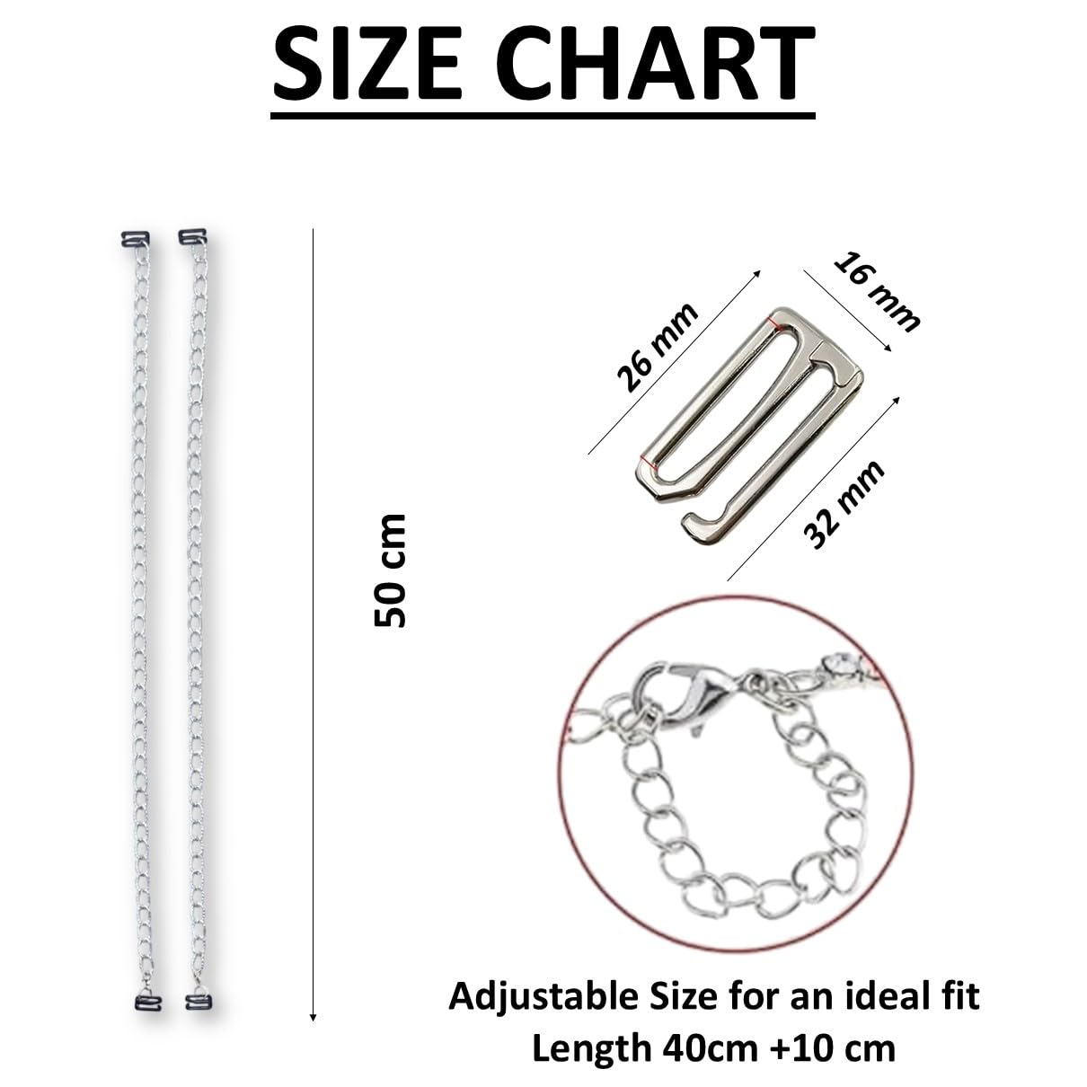 Big Link Chain |Decorative Glass Beads Adjustable Women Bra Strap for Women and Girls