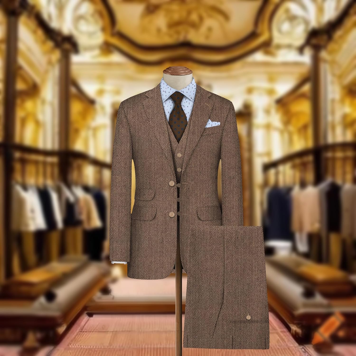 Timeless Herringbone Pattern: Features an authentic herringbone pattern, adding a touch of sophistication and elegance to your attire.