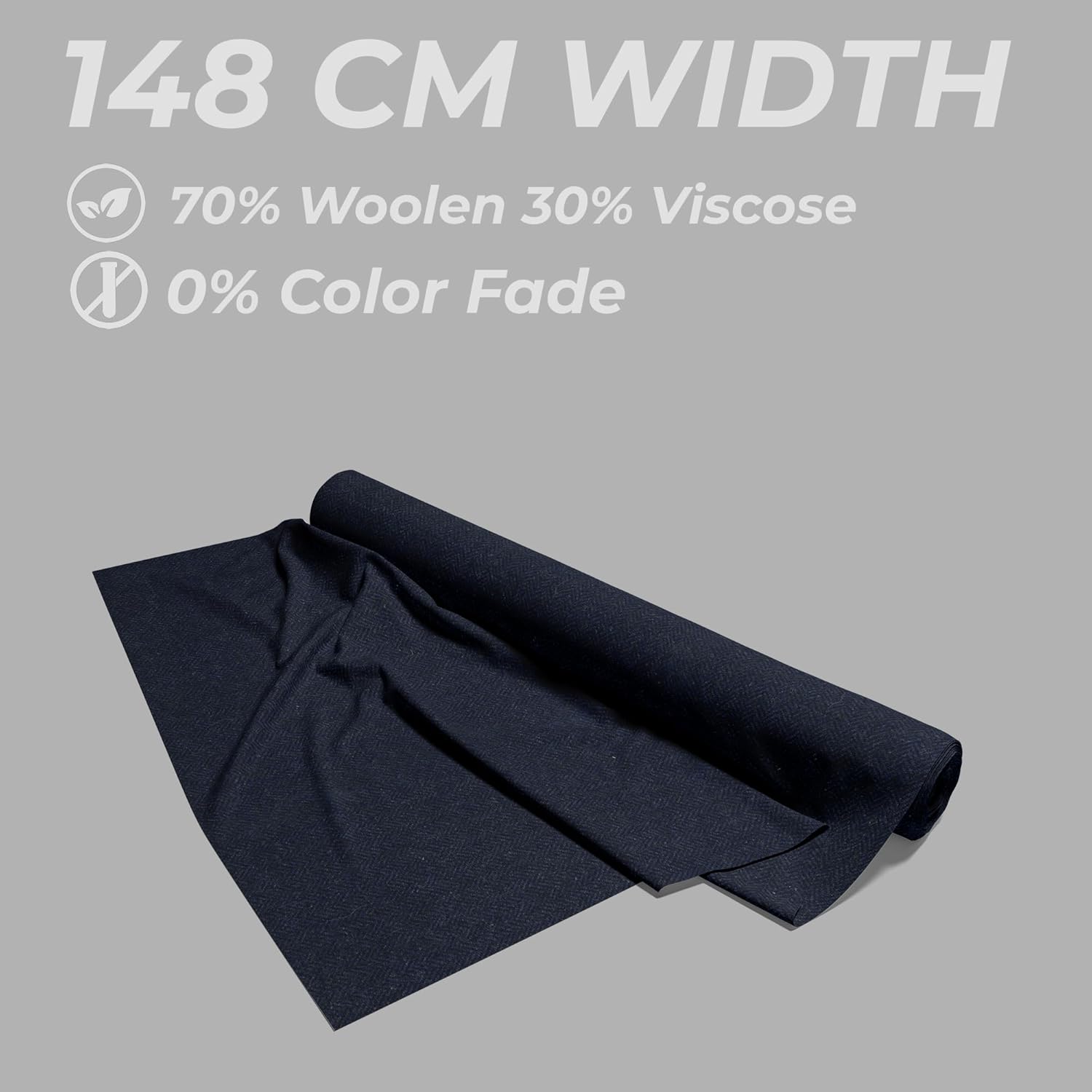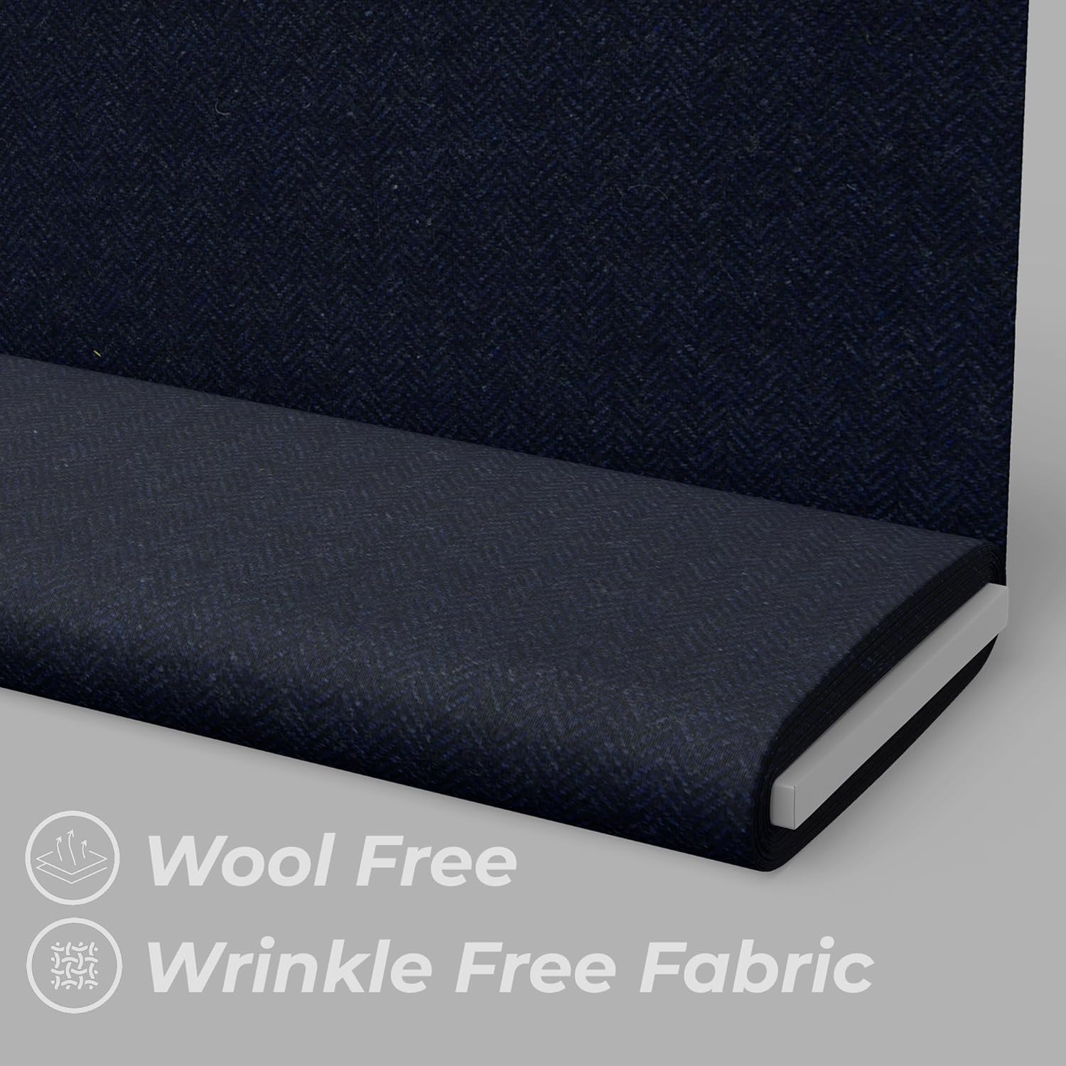 BIGREAMS Unstitched Navy Blue Herringbone Wool Blazer Yarn-Dyed Fabric for Three Piece Suit | 58" Wide, Wrinkle Free, Best for Coat Pant, Nehru Jacket,Free Size (4 Meter for AS Per Your Use)