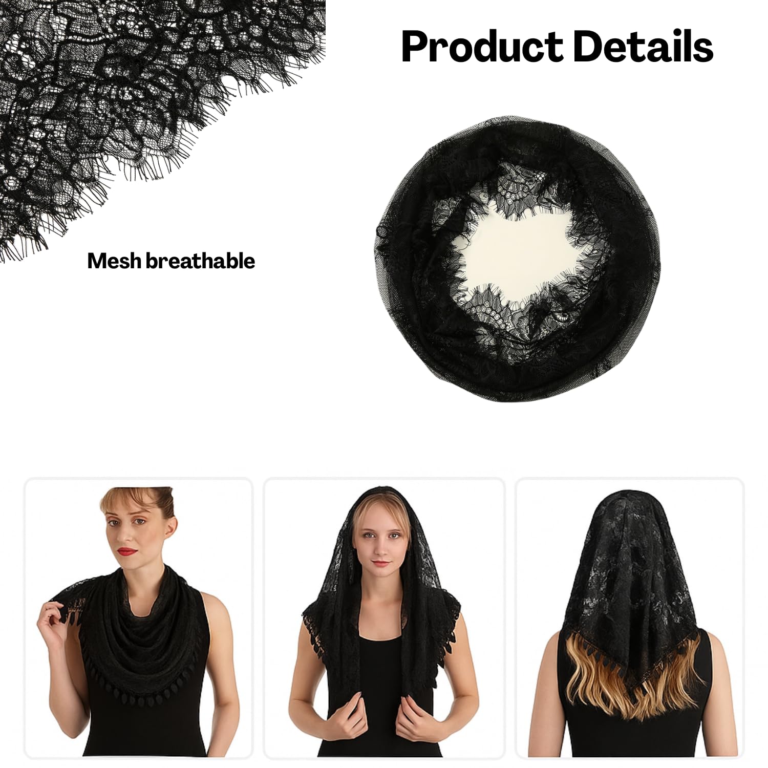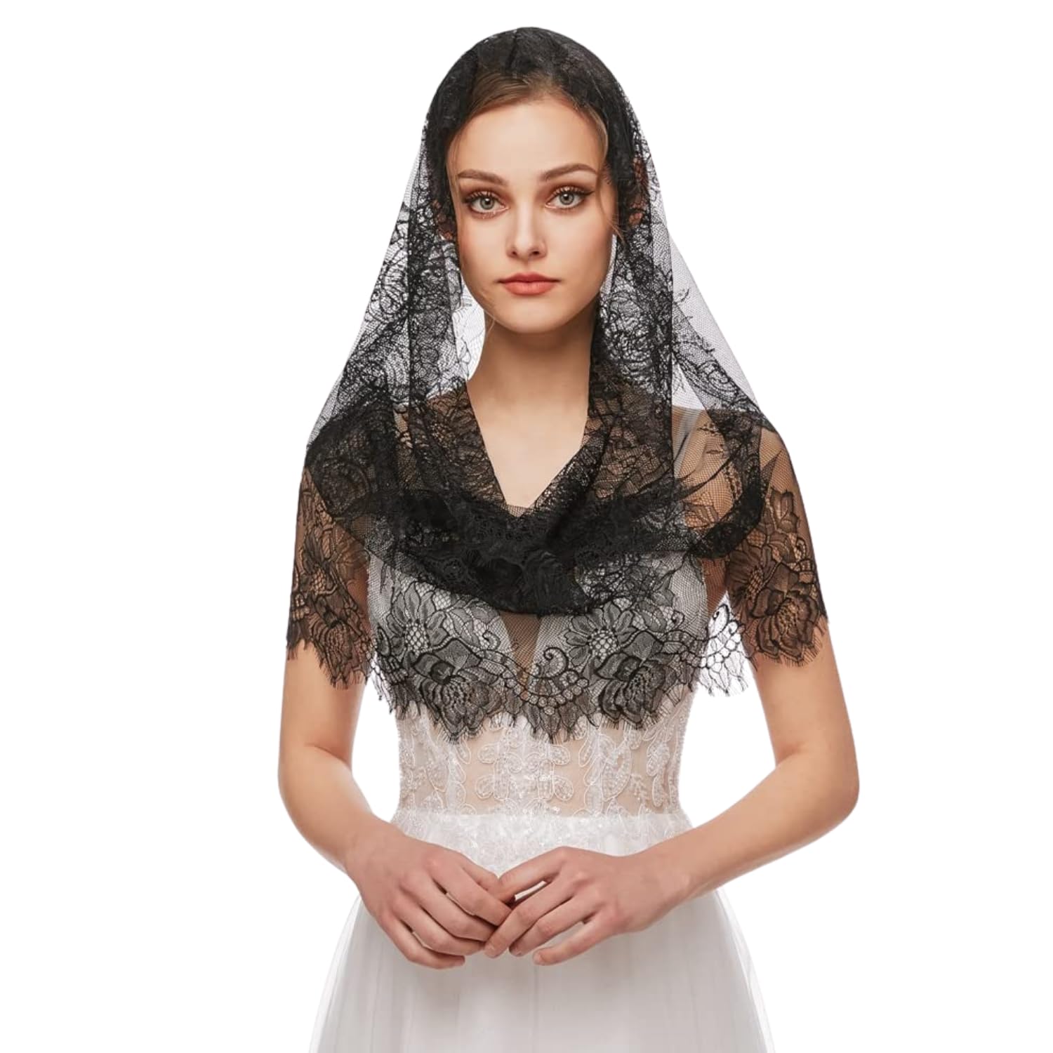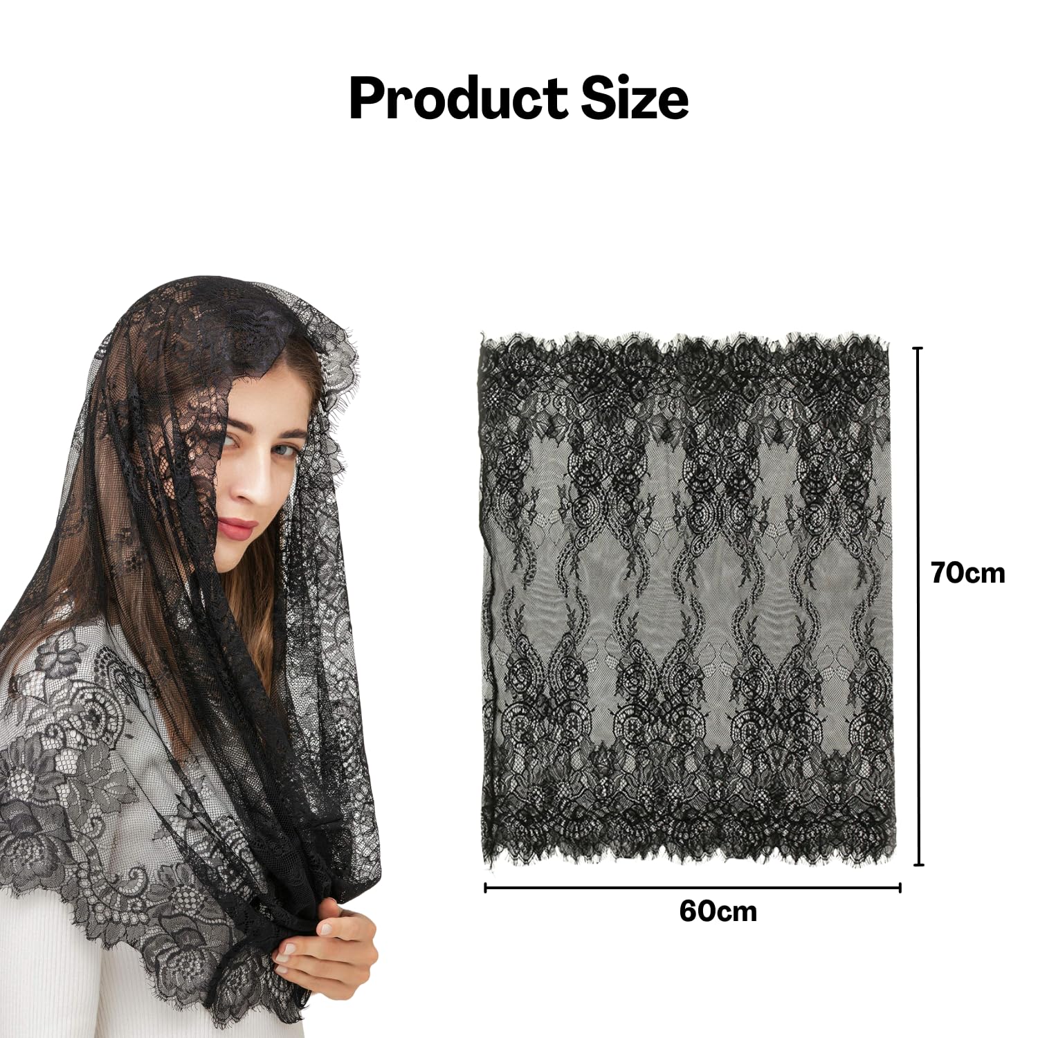 Black Lace Veil for Women, Elegant Church Scarf - Lightweight Chapel Head Covering, Stylish Bridal Hair Accessory for Wedding Outfit and Bride