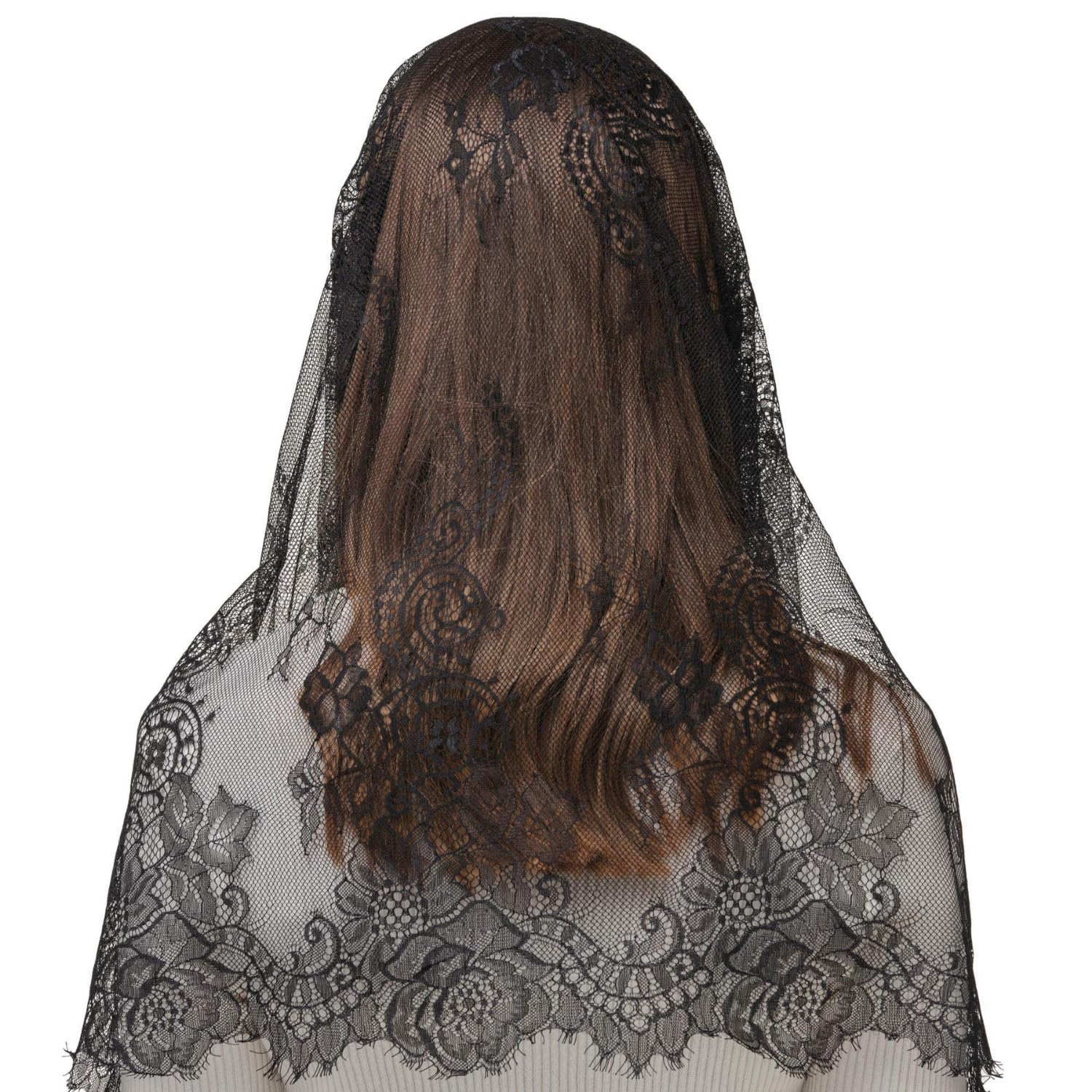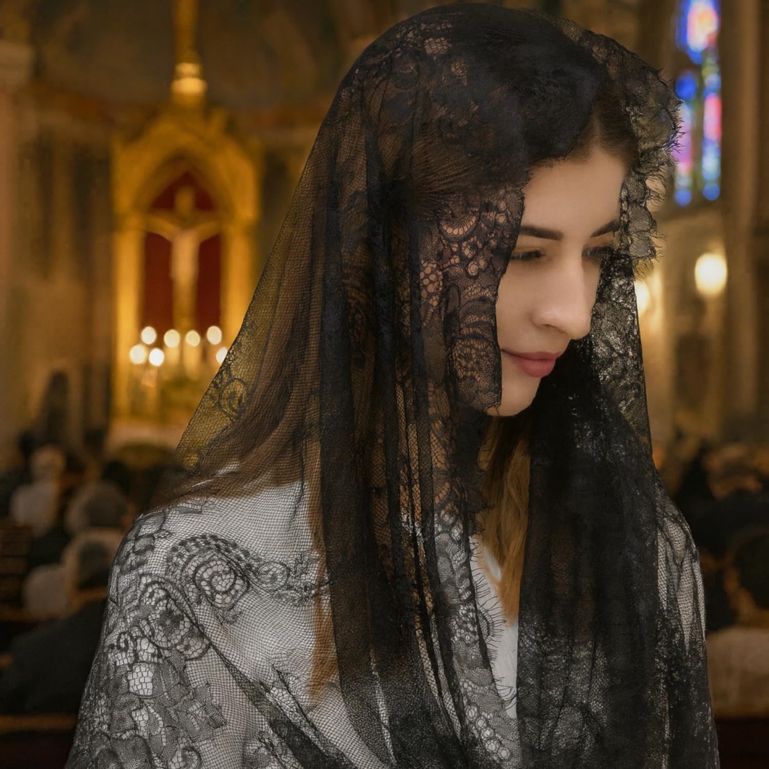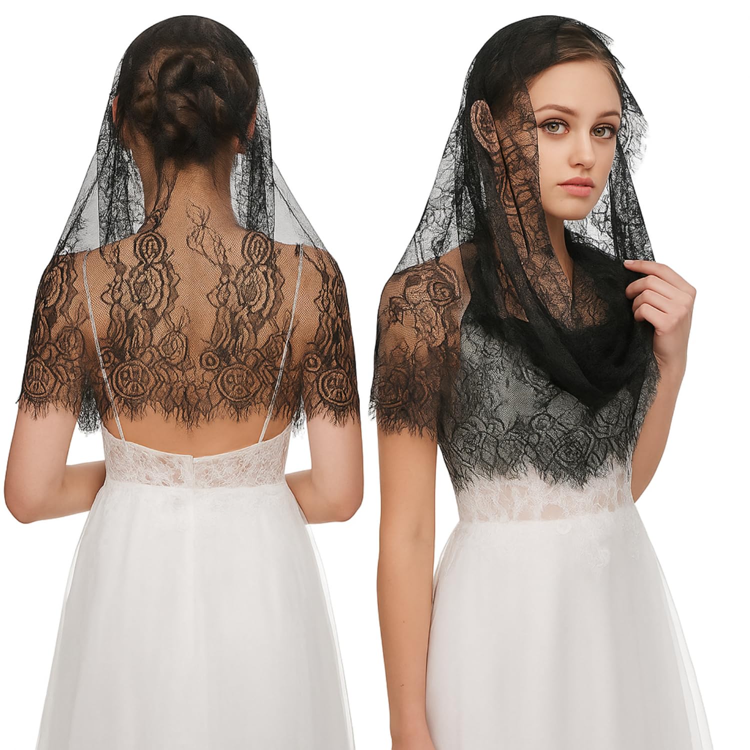 Black Lace Veil for Women, Elegant Church Scarf - Lightweight Chapel Head Covering, Stylish Bridal Hair Accessory for Wedding Outfit and Bride