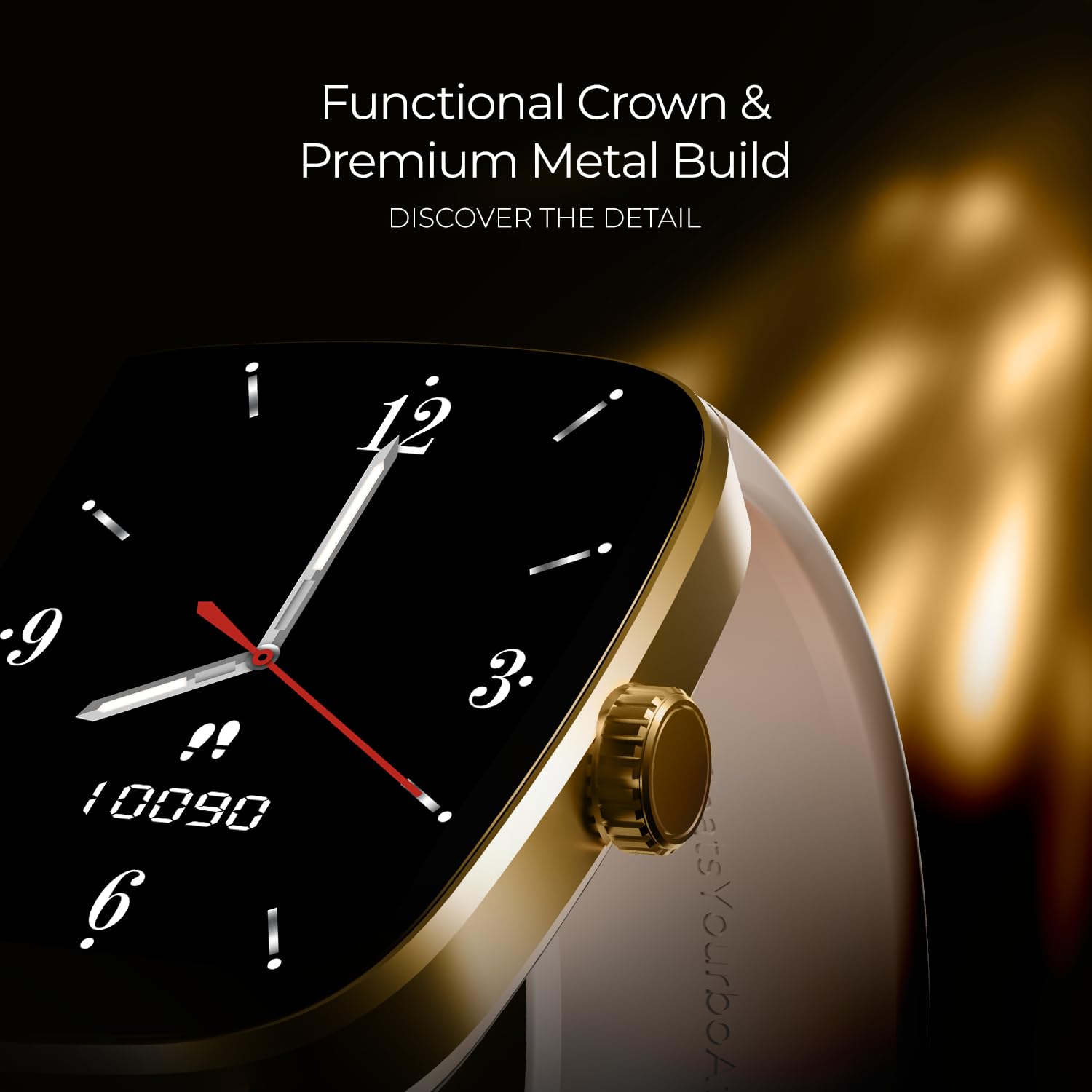 Crystal-Clear Display: View all the info you require easily on the 2.01” (5.10 cm) AMOLED display of the boAt Ultima Regal Smartwatch. Designed with 410x502p resolution for high clarity, this watch makes it easy to see the time, notifications, vital stats, etc. at any time of the day.