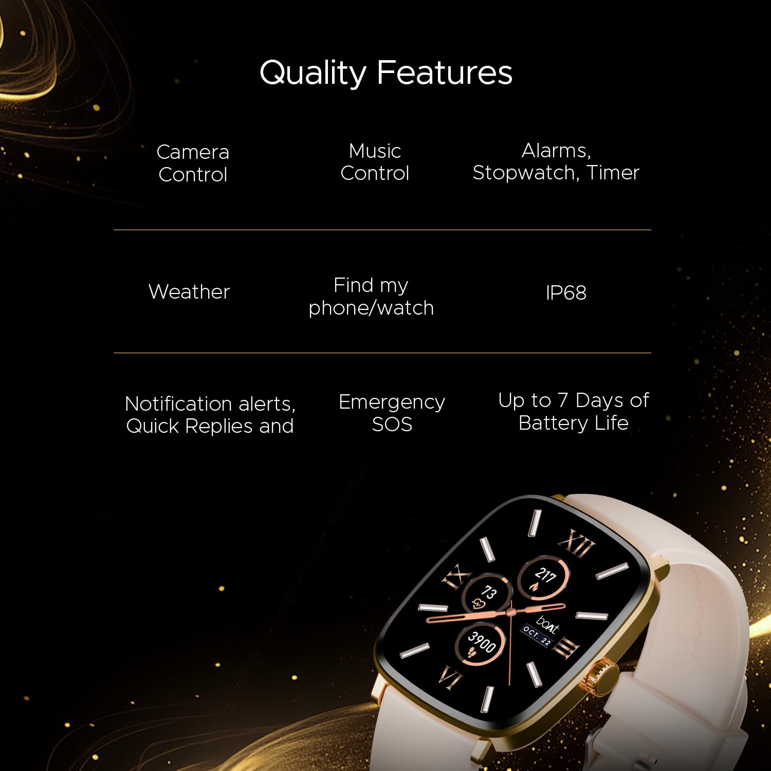 Emergency SOS: Get help with a single tap by using the SOS mode of this watch. Save your emergency contacts on the boAt Crest app and notify them when you need help.