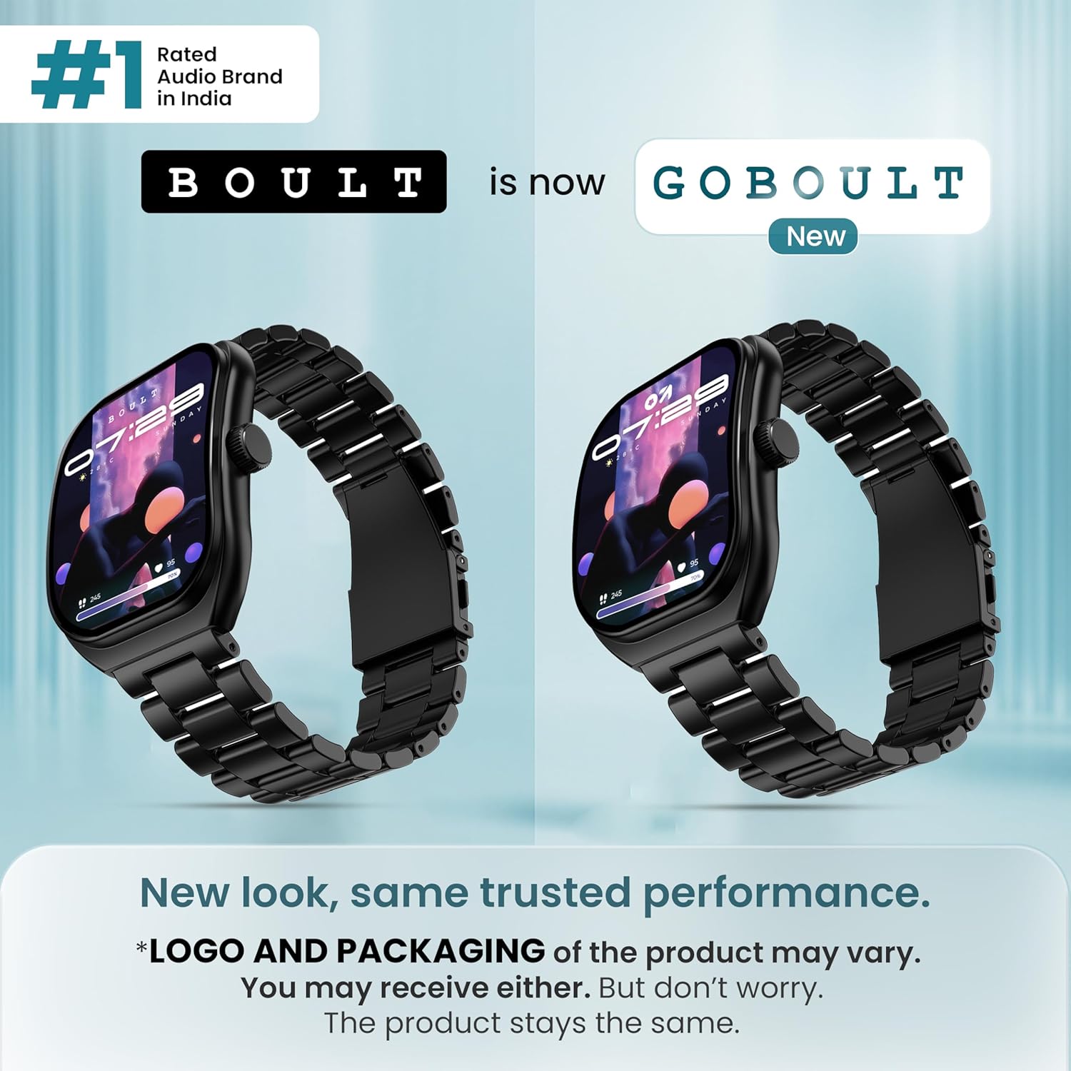 Boult GOBOULT (Formerly Trail Pro Smartwatch 2.01''3DCurved+ AMOLED Display,BT Calling 5.3, 600Nits Brightness, IP68, 250+ Watchfaces, 123+ Sports Modes, AI Voice Assistant, SpO2 Tracking(Jet Black)