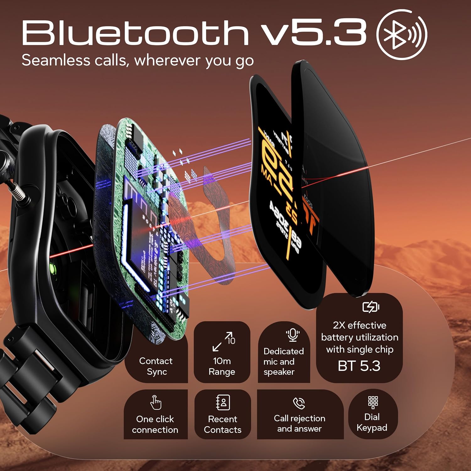 ✅Bluetooth Calling with Dedicated Mic & Speaker: Stay connected with Bluetooth 5.3, enabling hands-free calls directly from your wrist. The built-in mic and speaker deliver crystal-clear audio, making it a perfect companion for work, fitness, or casual conversations.