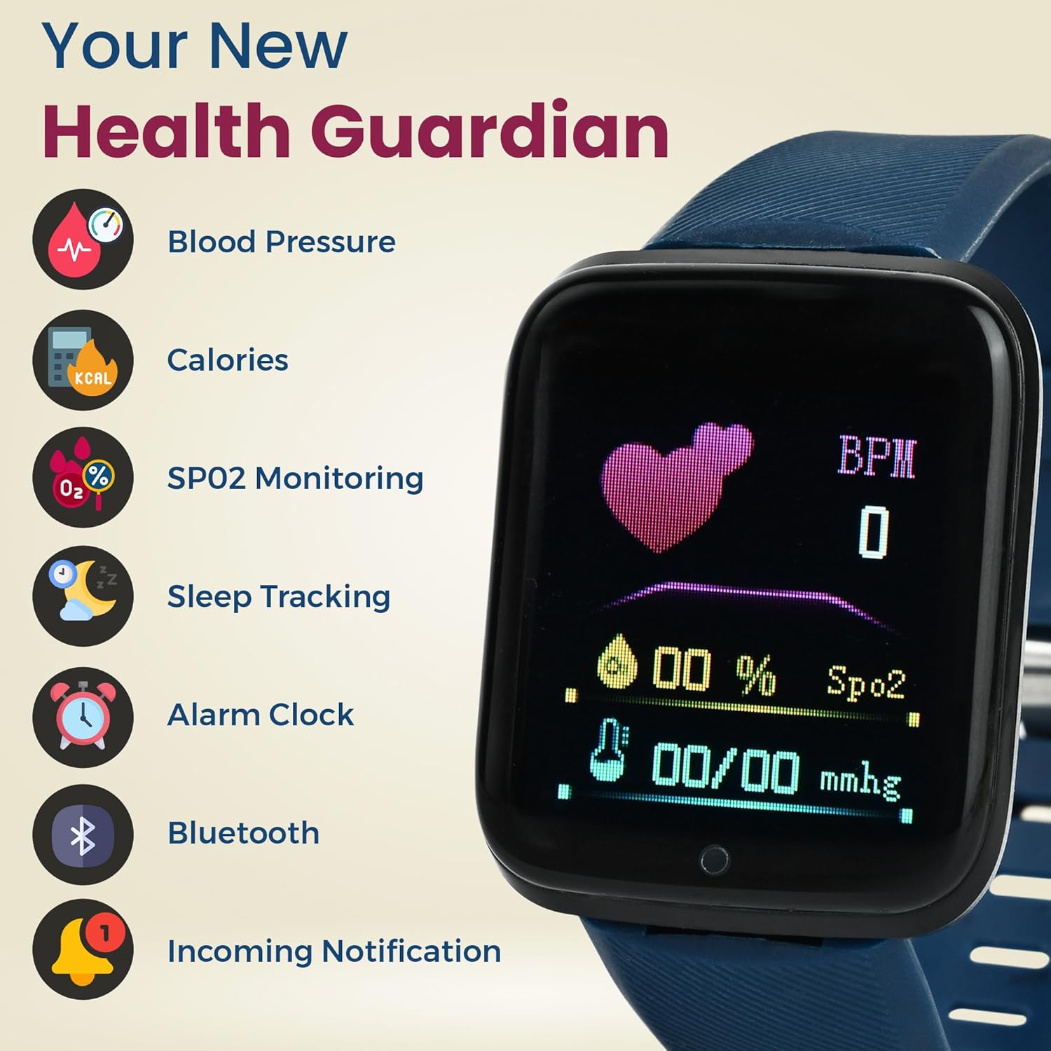 Bouncefit M I D116 Fitness Band Smart Watch for Men, Women, Boys, Girls, Kids – Single Touch Interface, Water Resistant, Workout Modes, Quick Charge Sports Smartwatch – Blue EE