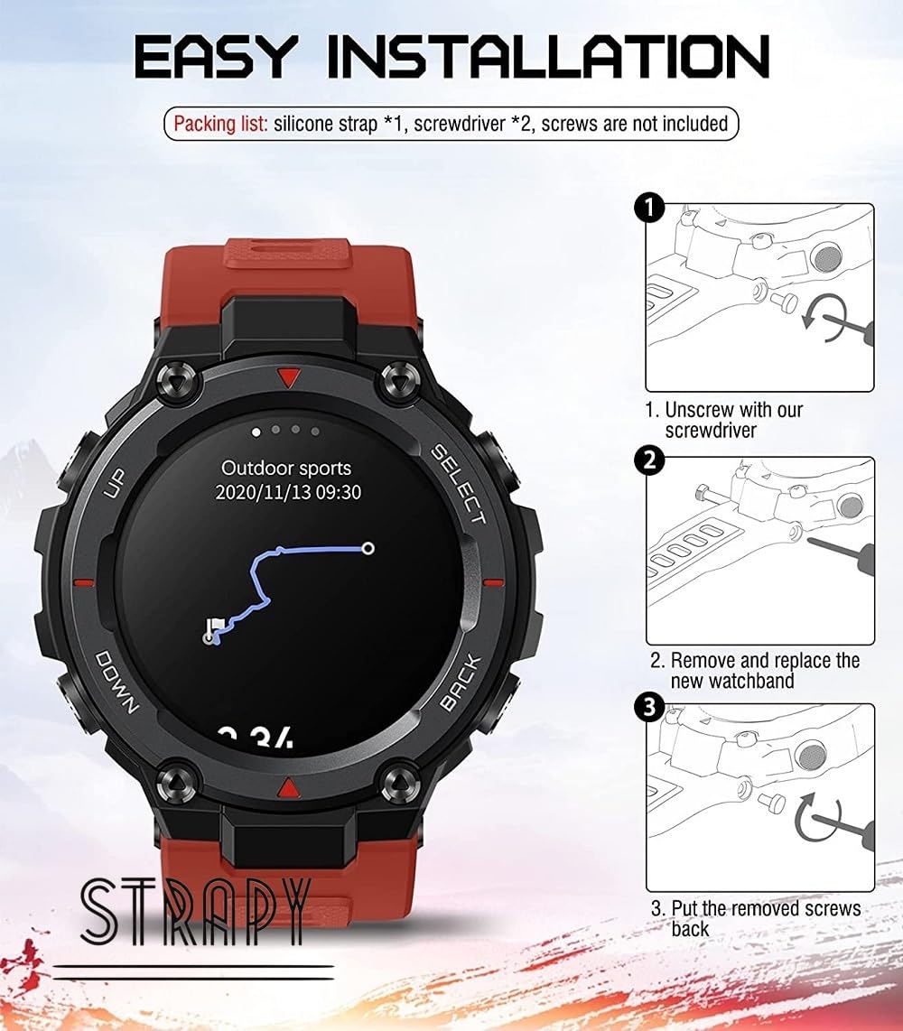 Package Contents: (PACK OF 2) 1 @ Strap Band For Amazfit T-Rex /T-Rex Pro Smart Watch Only , 2 @ Screwdriver tool. (Note: the Smartwatch is Not Included)