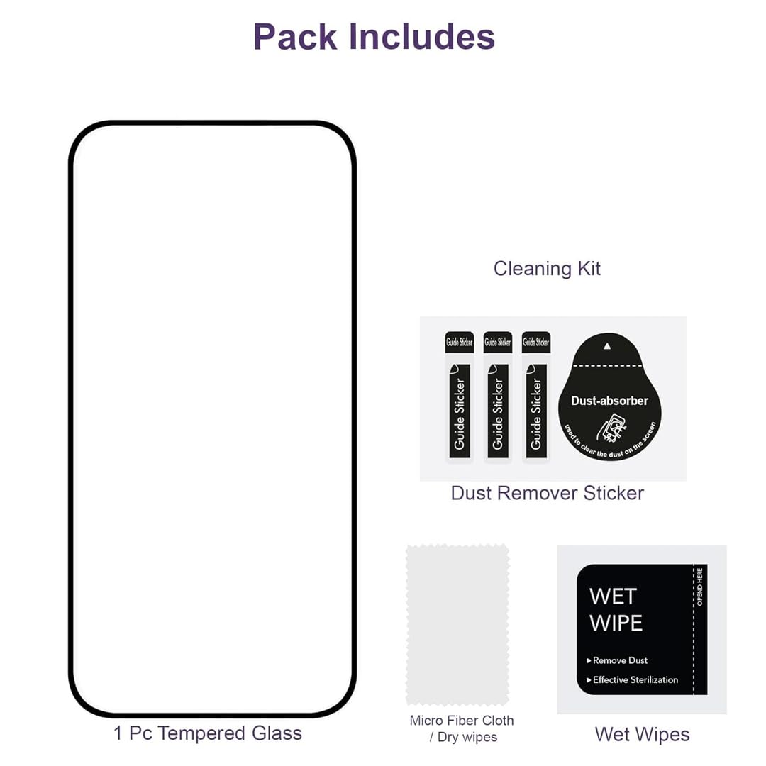 Box includes : 1Pc Czartech Tempered Glass, Wet cleaning Wipe, Cleaning Cloth, Dust removal and alignment stickers, Warranty Card. Watch our Tempered Glass application video on Czartech Website for correct and hassle free Do - It - Yourself application.