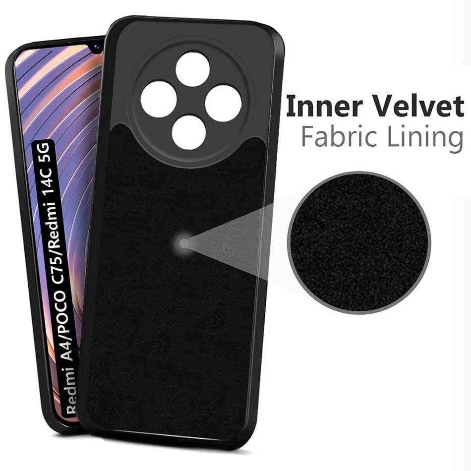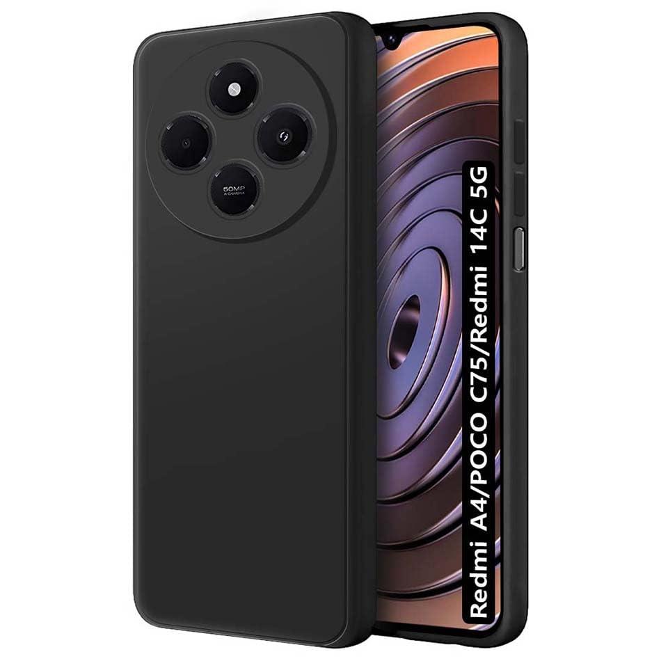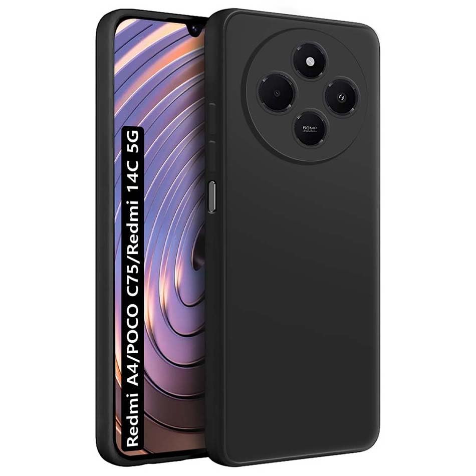 Fashionury Back Cover for Redmi A4 5G / Poco C75 5G / Redmi 14C 5G / Poco M7 5G | Matte Soft Silicon Flexible | Camera Bump Protection | All Side Shock Proof Rubberised Back Case Cover (Black)