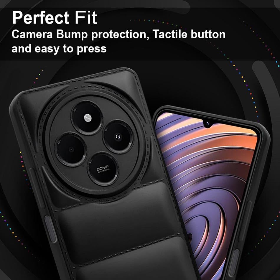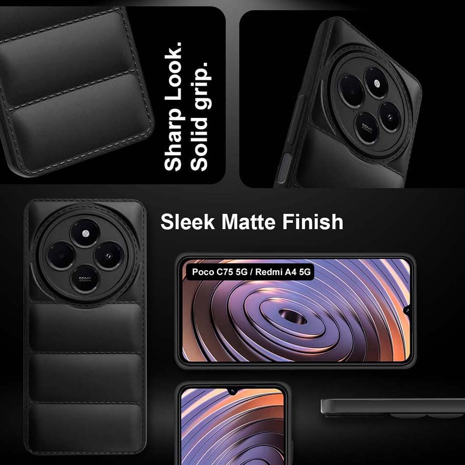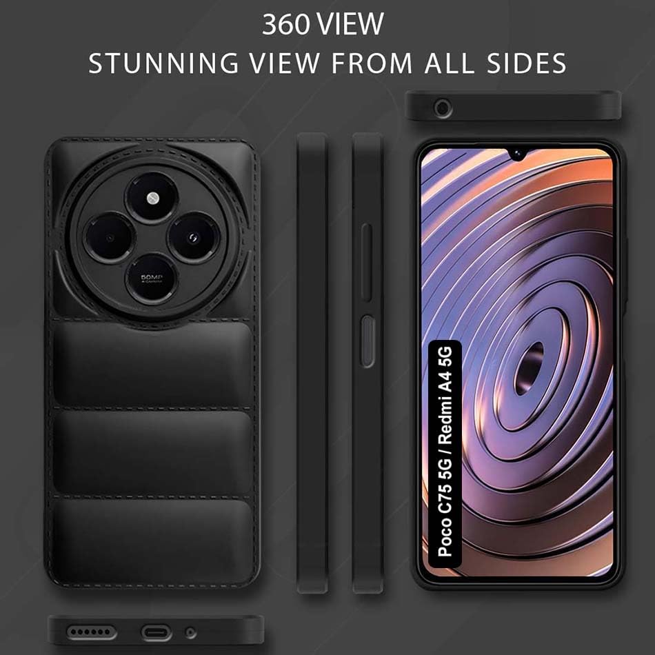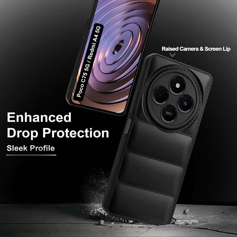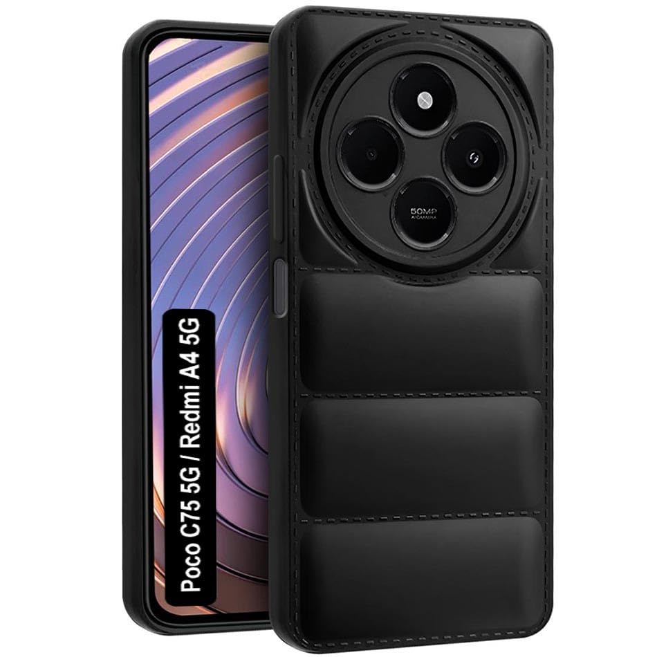 Fashionury Redmi A4 5G / Poco C75 5G / Redmi 14C 5G / Poco M7 5G Back Case | Shockproof Armor Bumper | Liquid Silicon Puff Case | Ultimate Drop Protection | Soft TPU Case Cover (Black)