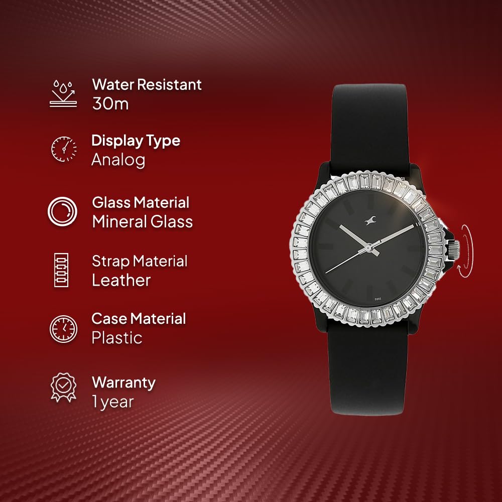Want to get some spunk and glitter to your life? With this Fastrack Beach Analog Black Dial Women's Watch, you can now meet this purpose and add timeliness to your life fashionably. Coming in a smart black colour, this round dialled watch can be a great fashion accessory that you can flaunt with your daily wear.