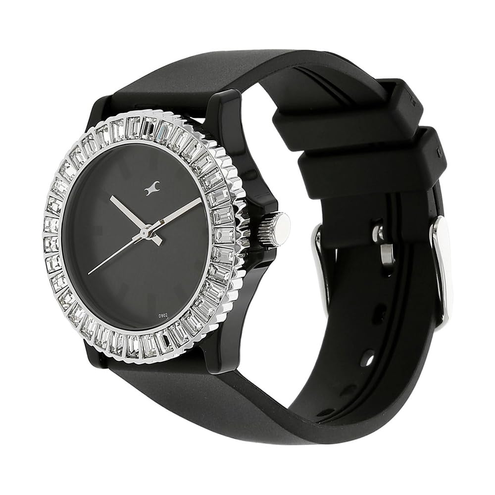 Fastrack, the leading youth brand from Titan Industries has been offering both funky and elegant accessories that can be your perfect fashion companion. Belonging to their range of Fastrack women's watches, this black coloured timepiece can be teamed with any kind of attires. So, whether you are trying to keep up with time on a busy Monday or trying to be punctual for that Sunday brunch, this time makes sure that you are always on time. The crystal studded bezel surrounding the jet black dial lends this watch a unique look. Featuring quartz movement and an analog dial, this timepiece from Fastracks new Beach Collection can add precision to your daily schedule, and make sure you never fall behind on punctuality.
