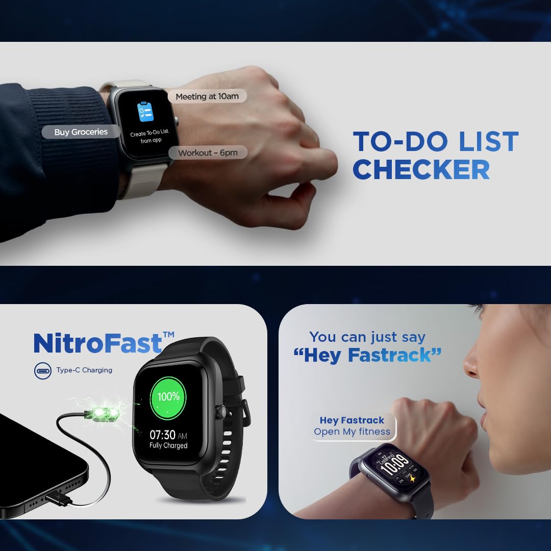 Fastrack Vox Plus 1.85” Smart Watch for Men & Women with Ultra VU Display,to-do List,BT Calling, Offline Voice Commands, 24/7 Health Suite (SPO₂, HRM, Sleep), IP68, Games & Multiple Watch Faces