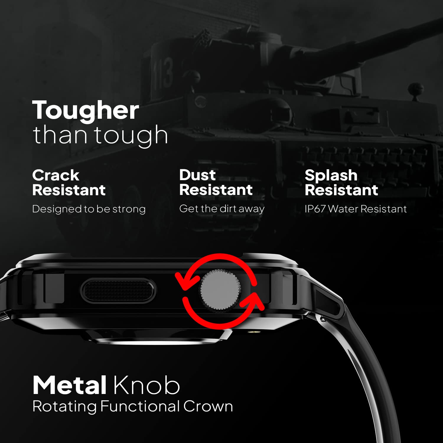 Fire-Boltt Tank 1.85" Outdoor Rugged Bluetooth Calling Smart Watch, 123 Sports Mode, 8 UI Interactions, Built in Speaker & Mic, 7 Days Battery (Black)