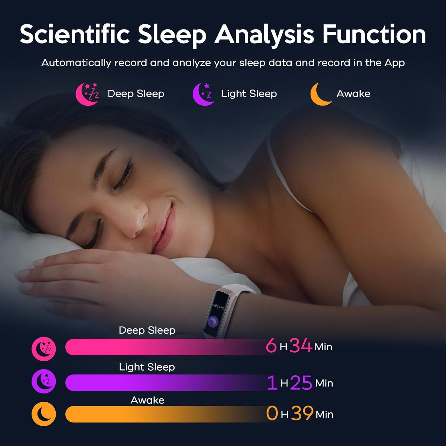 Take control of your health and fitness journey with this advanced smart fitness tracker. The sleek design features a vibrant display that shows real-time health metrics at a glance. Monitor your heart rate throughout the day, track your sleep patterns for better rest, and keep tabs on vital health indicators including blood pressure and blood oxygen levels. The comfortable, adjustable band ensures a secure fit during any activity. Sync with the companion smartphone app to view detailed health insights, activity statistics, and personalized trends. Whether you're counting steps, tracking workouts, or monitoring your sleep quality, this versatile fitness tracker serves as your 24/7 wellness companion. The intuitive interface makes it easy to navigate through various features, while the clear display ensures excellent visibility in any lighting condition. Stay connected to your health goals with comprehensive tracking capabilities in a sophisticated, wearable package.
