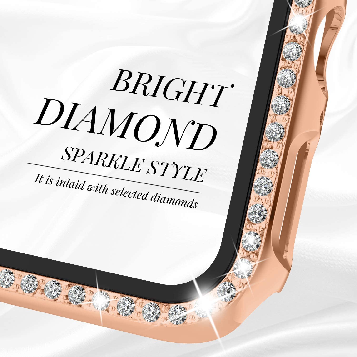 FOLX FAB26 Apple Diamond Watch Case with Glass Screen Protector Compatible with Apple iWatch Series 7/6/5/4/3/2/1/SE, Bling Crystal Diamond Rhinestone for Women Girls iWatch (42MM, Rose Gold)