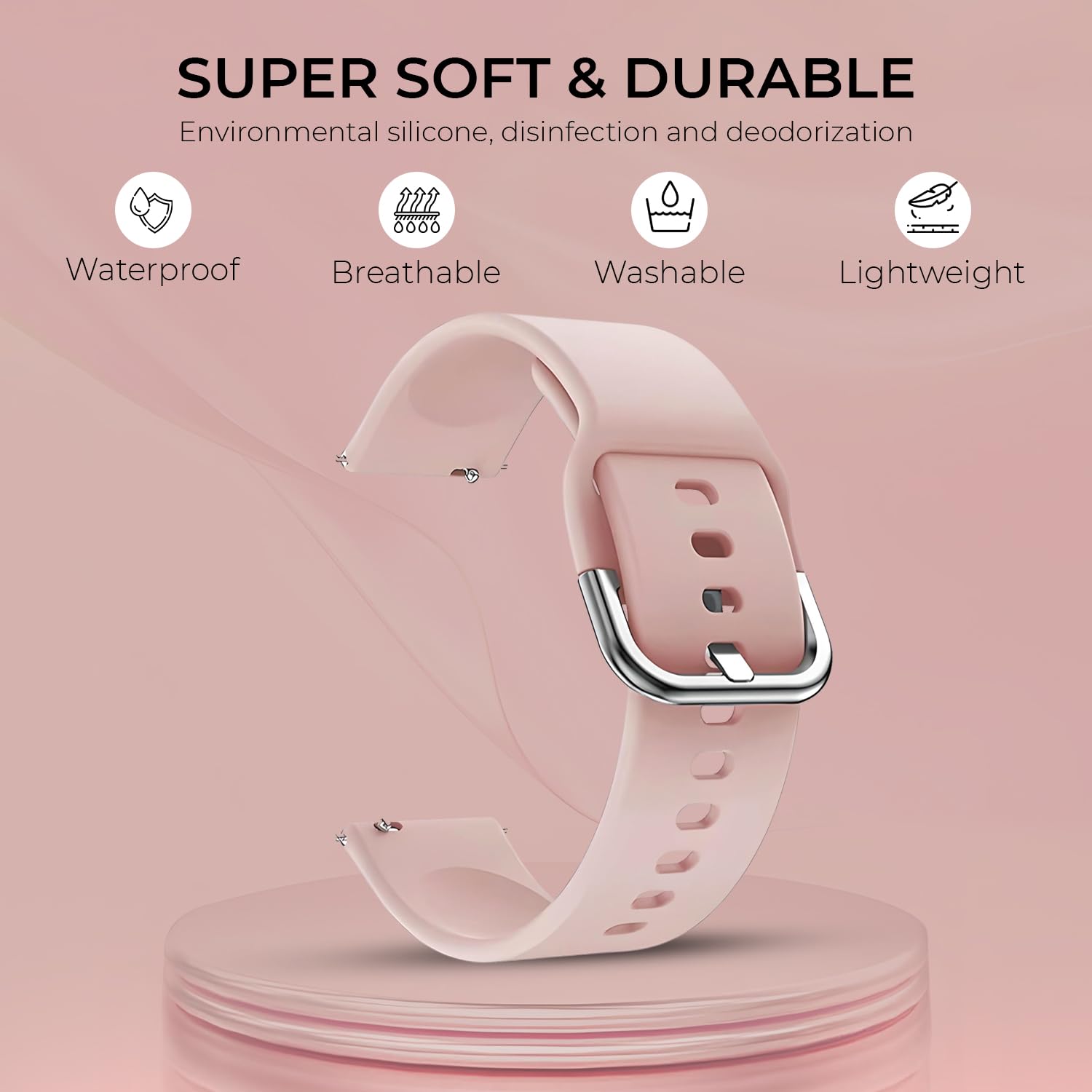 🔹 Elegant & Versatile Design for All Occasions: The strap’s Baby Pink color and minimalist design make it a versatile accessory for all lifestyles. Whether paired with casual wear, formal attire, or fitness gear, this strap adds a touch of sophistication to your smartwatch. Its subtle elegance makes it suitable for men and women of all ages, making it a thoughtful gift for smartwatch users. Additionally, the strap is easy to clean—simply wipe with a damp cloth to maintain its fresh, vibrant look.