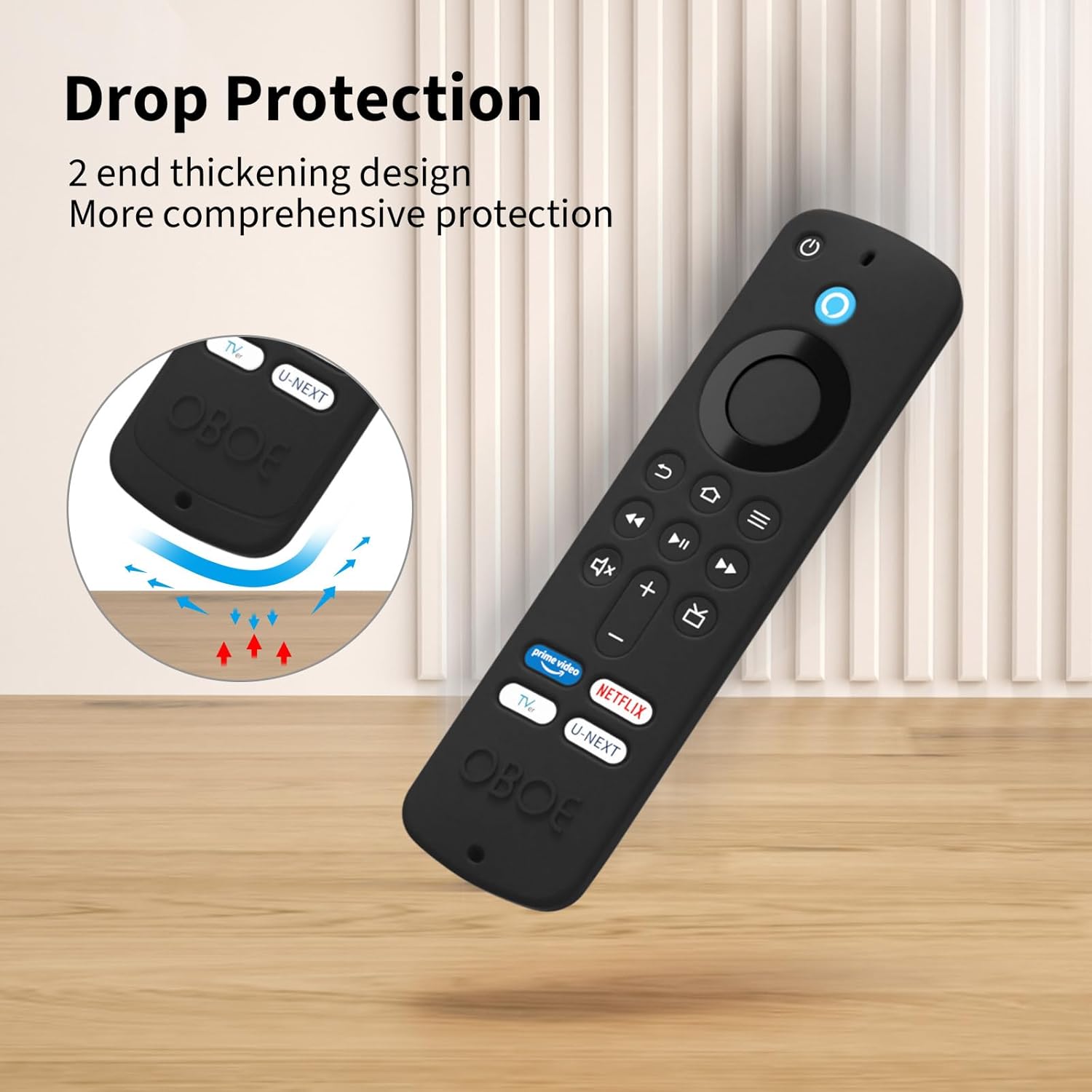 Oboe Silicone TV Remote Cover 'Compatible with' All New Fire TV Stick 4k & Fire Tv Stick HD Remote 2025 Model Protective Case with Lanyard (Black) [Remote NOT Included]