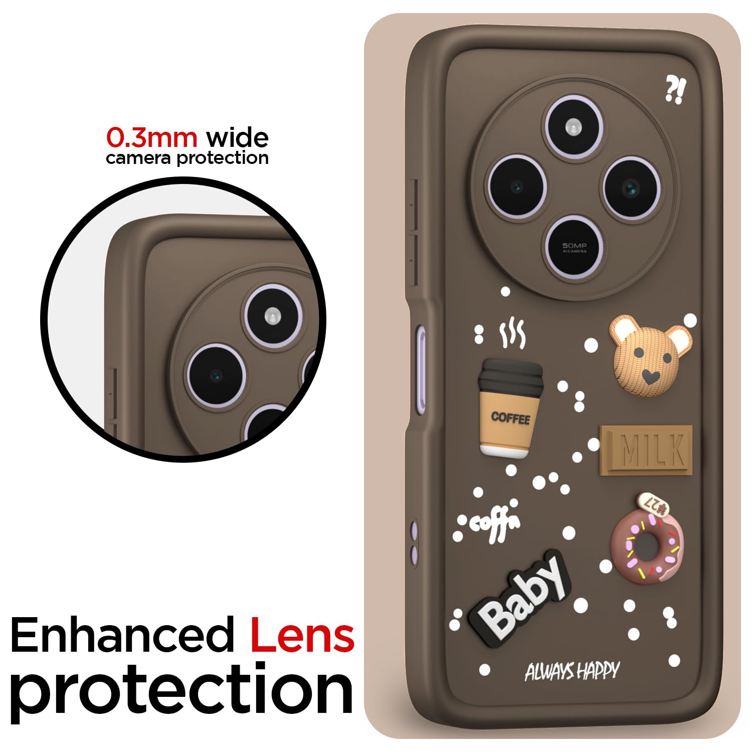 Outlouders Back Cover for Redmi A4 5G / Redmi 14C 5G / Poco C75 5G | 3D Cartoon Cute Fun Bear | Silicone Full Body Protection Bumper Case (Brown)