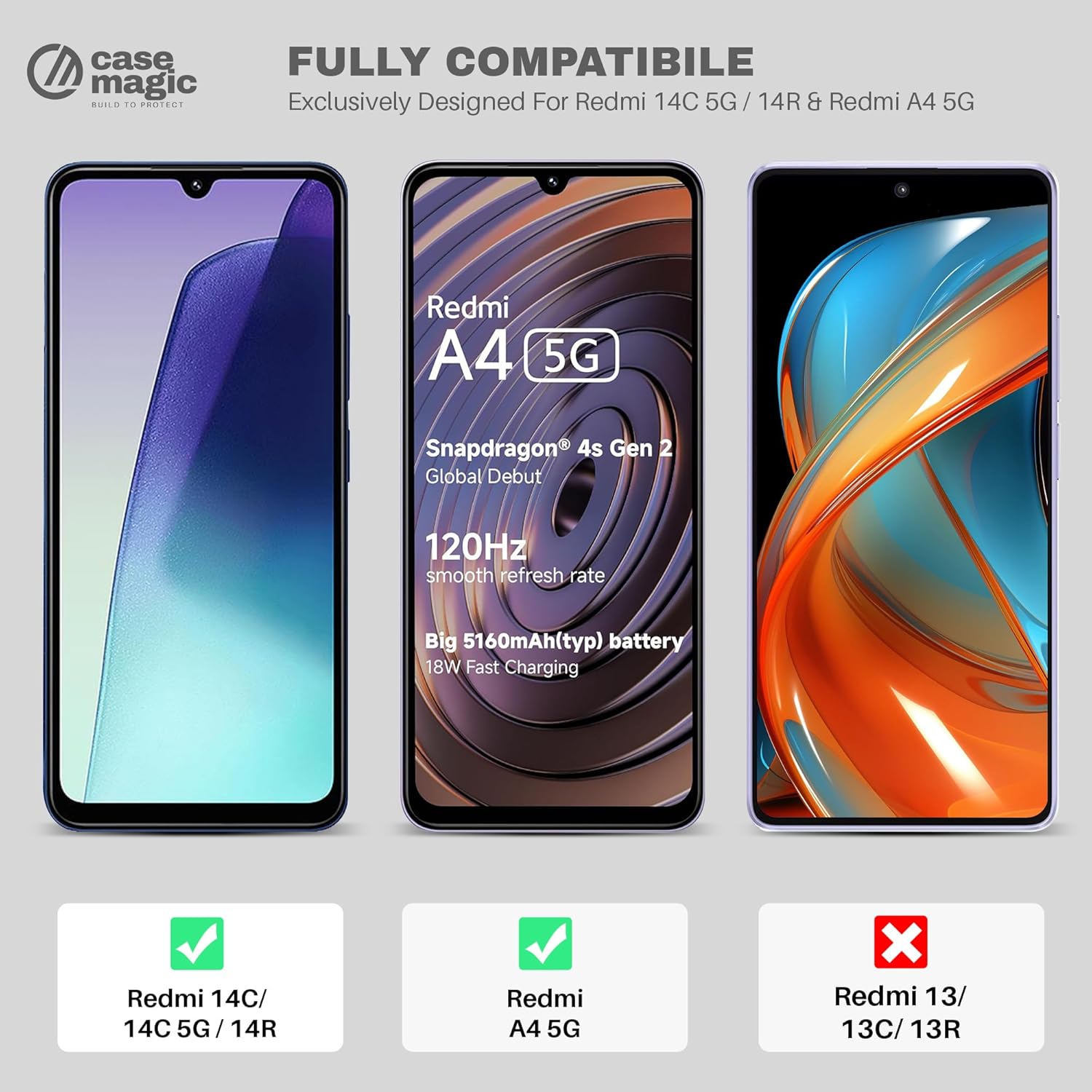 🔹 Perfect Compatibility with Xiaomi Redmi MI 14C 5G/ 14R/ A4 5G Edge to Edge – Specifically engineered for Xiaomi Redmi MI 14C 5G, 14R 5G, and A4 5G models, this Case-Magic tempered glass screen protector offers full, edge-to-edge coverage, ensuring maximum protection. It fits seamlessly, safeguarding your device's screen from scratches, drops, and daily wear. Not compatible with any other models – always double-check the model number to guarantee a perfect fit.