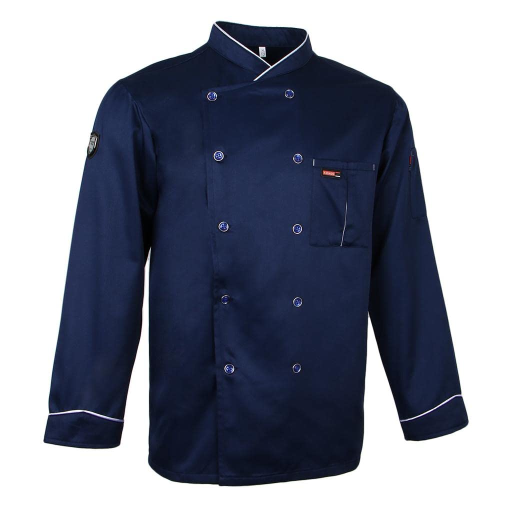Piping Chef Jacket Coat Uniform Long Sleeve Hotel Kitchen Apparel 3XL Blue | Uniforms & Work Clothing |Jackets & Vests