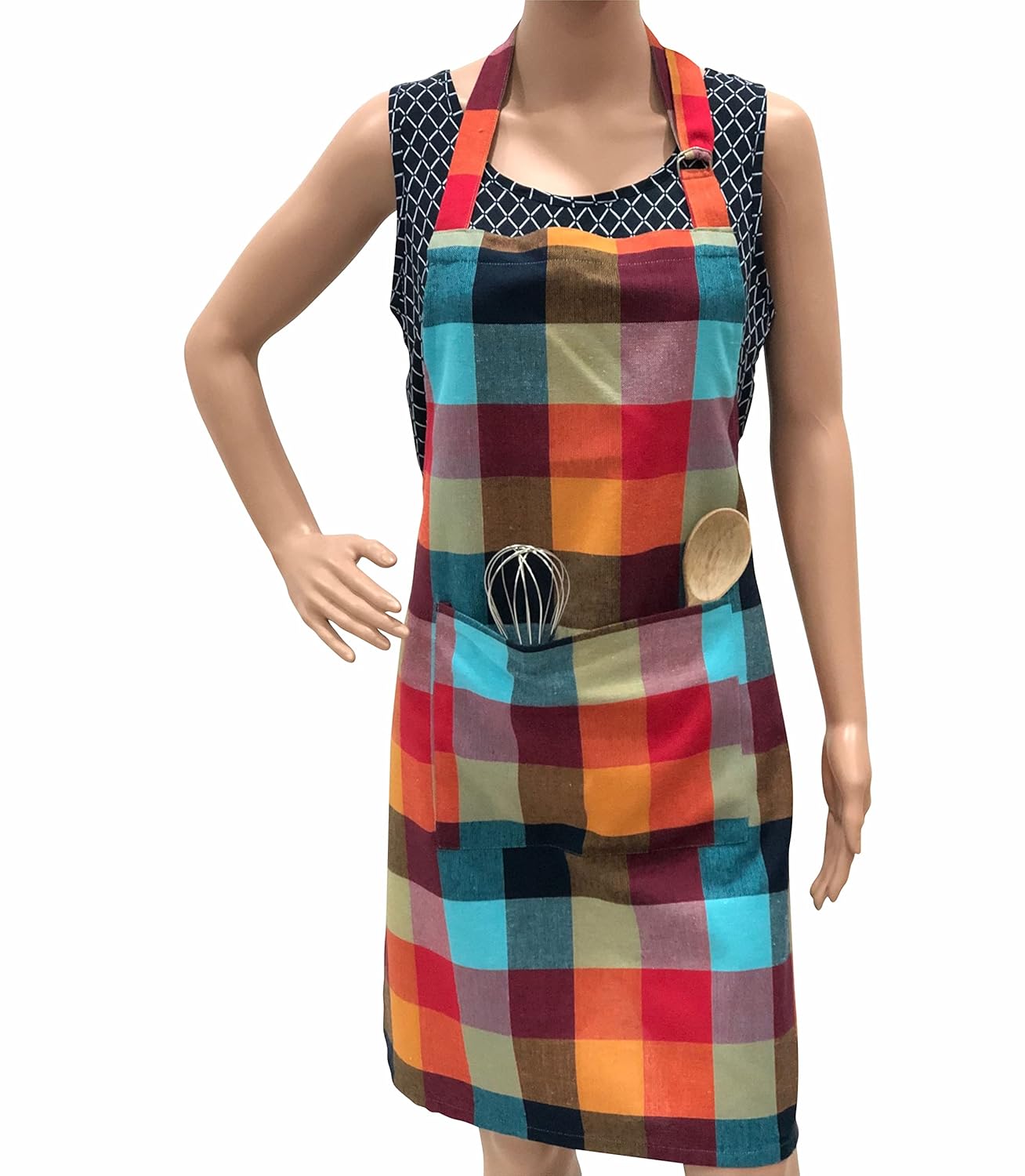 PIXEL HOME © Cotton Kitchen Apron with Adjustable Neck Strap and ties with Centre Pocket (pack of 1)