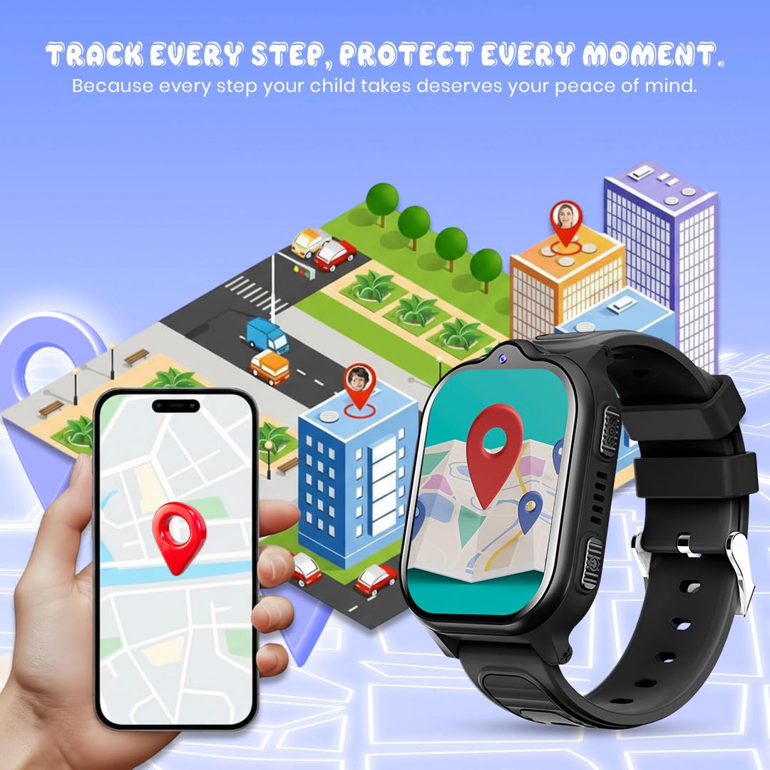 PunnkFunnk TrackNova 4G/5G Kids Smart Watch | HD Video & Voice Calling | Real-Time GPS | Safe Zone, SOS & Class Mode | Family Chat, Games | FaceLock | 800mAh Battery | Smart Watch for Kids - (Black)