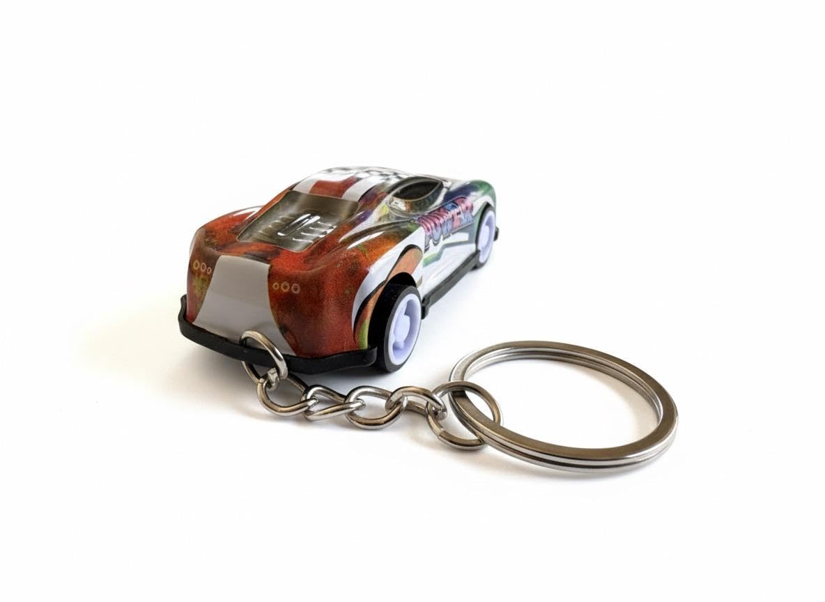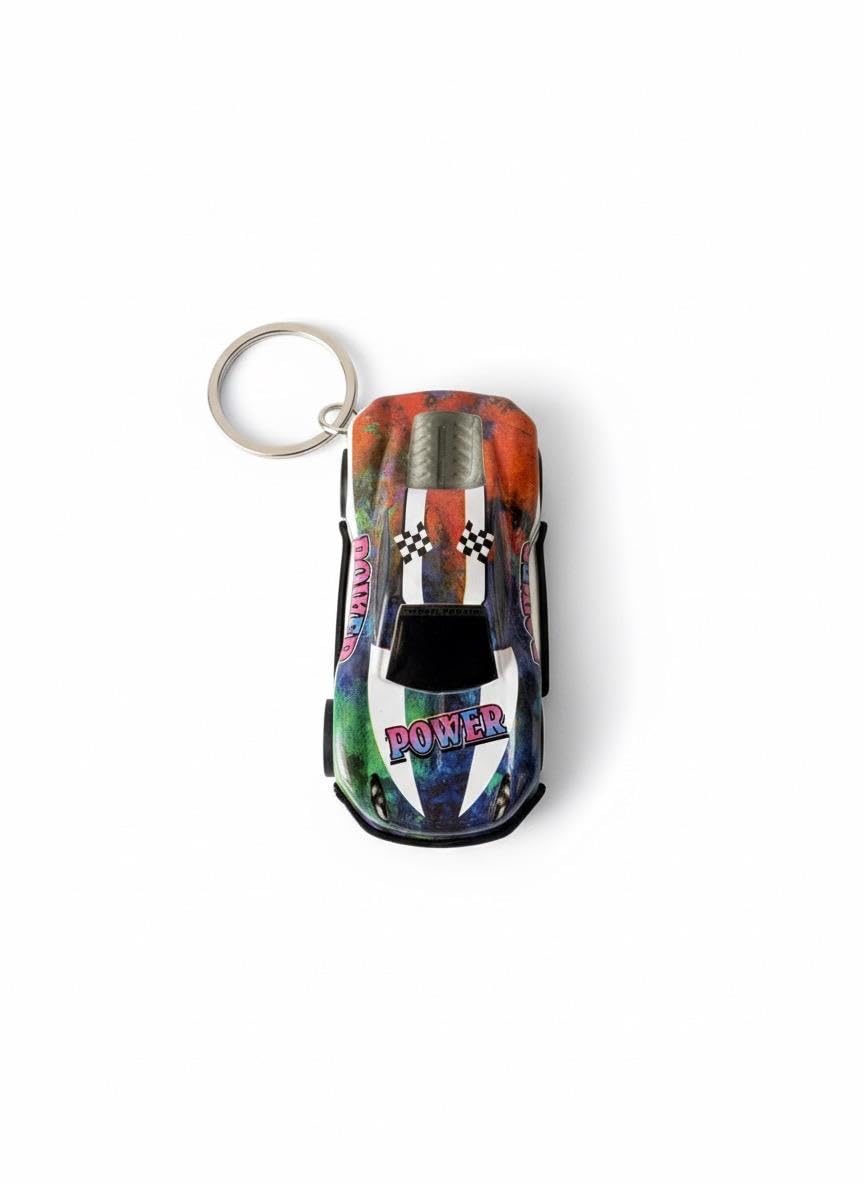 Racing Car Keychain, Metallic Multicolor Design with Power Graphics, Sports Style Collectible Key Ring Accessory