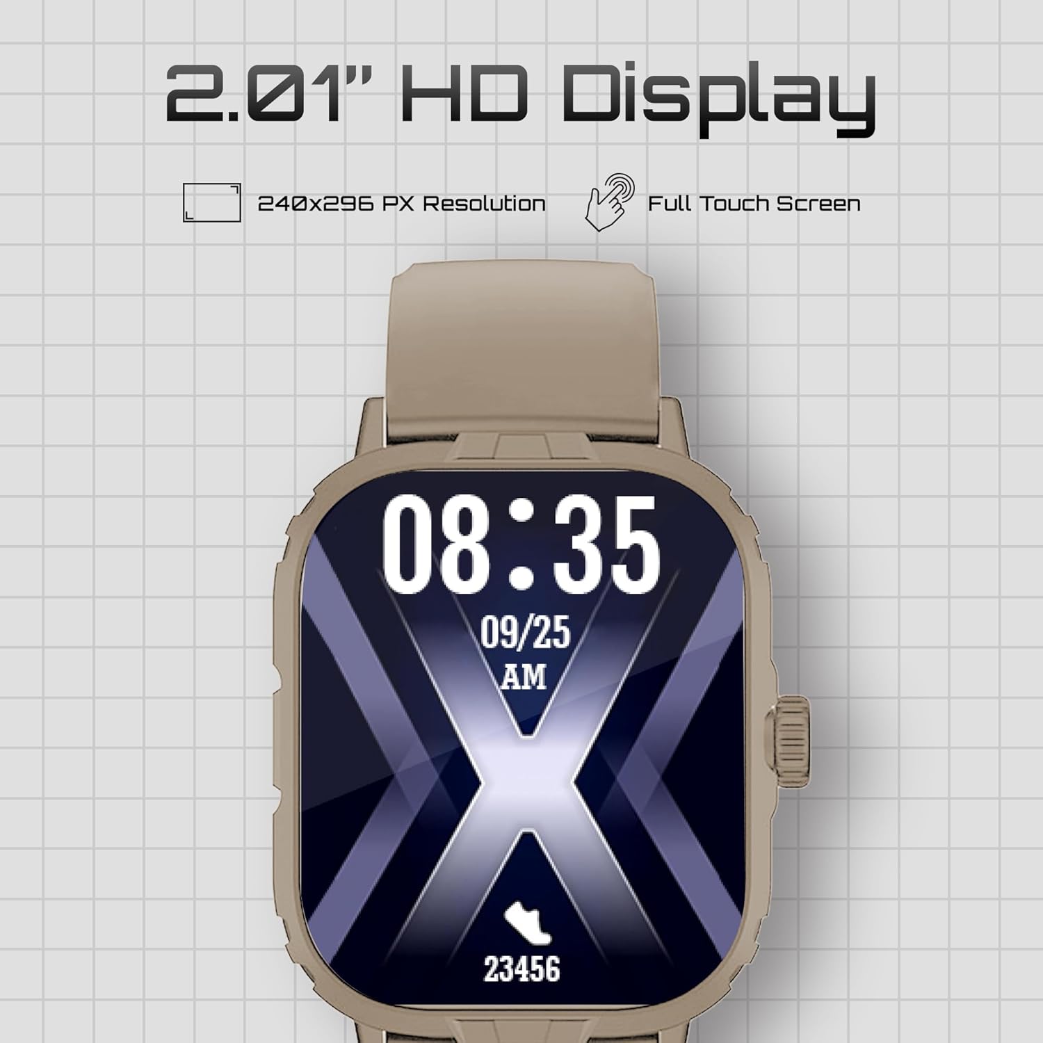 RD XR-500 Della Smart Watch Calling, 2.01 HD Display Multiple Sports Modes, 20 Days Battery Life, Heart Rate, Step, Music Suite, Voice Assistance Gold