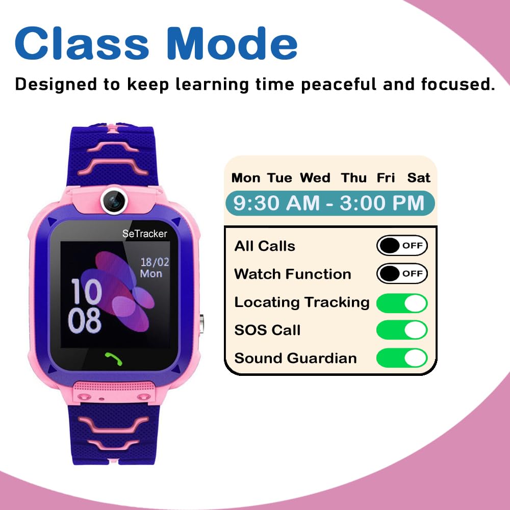 SeTracker M1 Calling Kids Smart Watch for Boys & Girls | Two-Way Calling, SOS, Location Tracking, Camera | 4G/5G SIM Supported | App Control | Voice Chat (Pink)