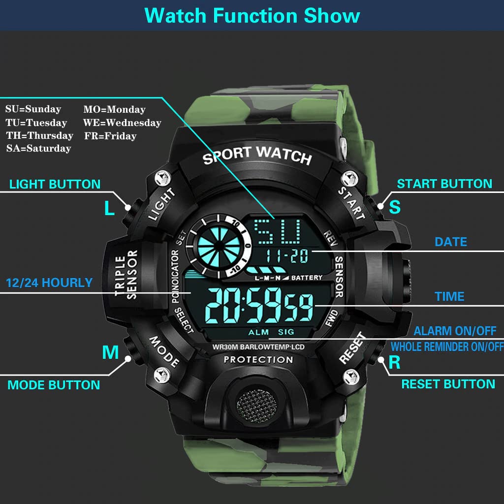 Week calenderStopwatchHour12/24 hourlyLonger battery backupLuminousAlarmWeek Display30 M Waterproof