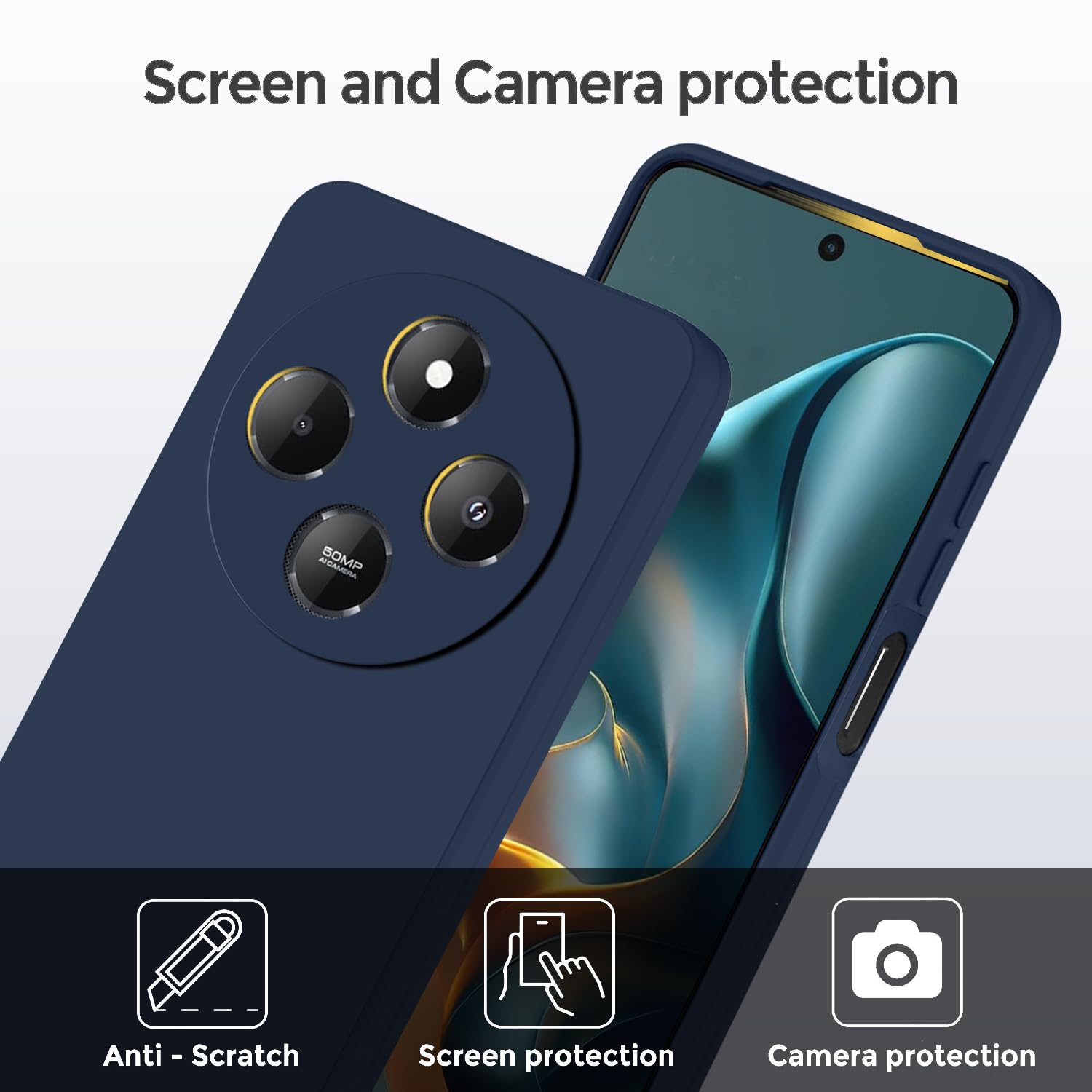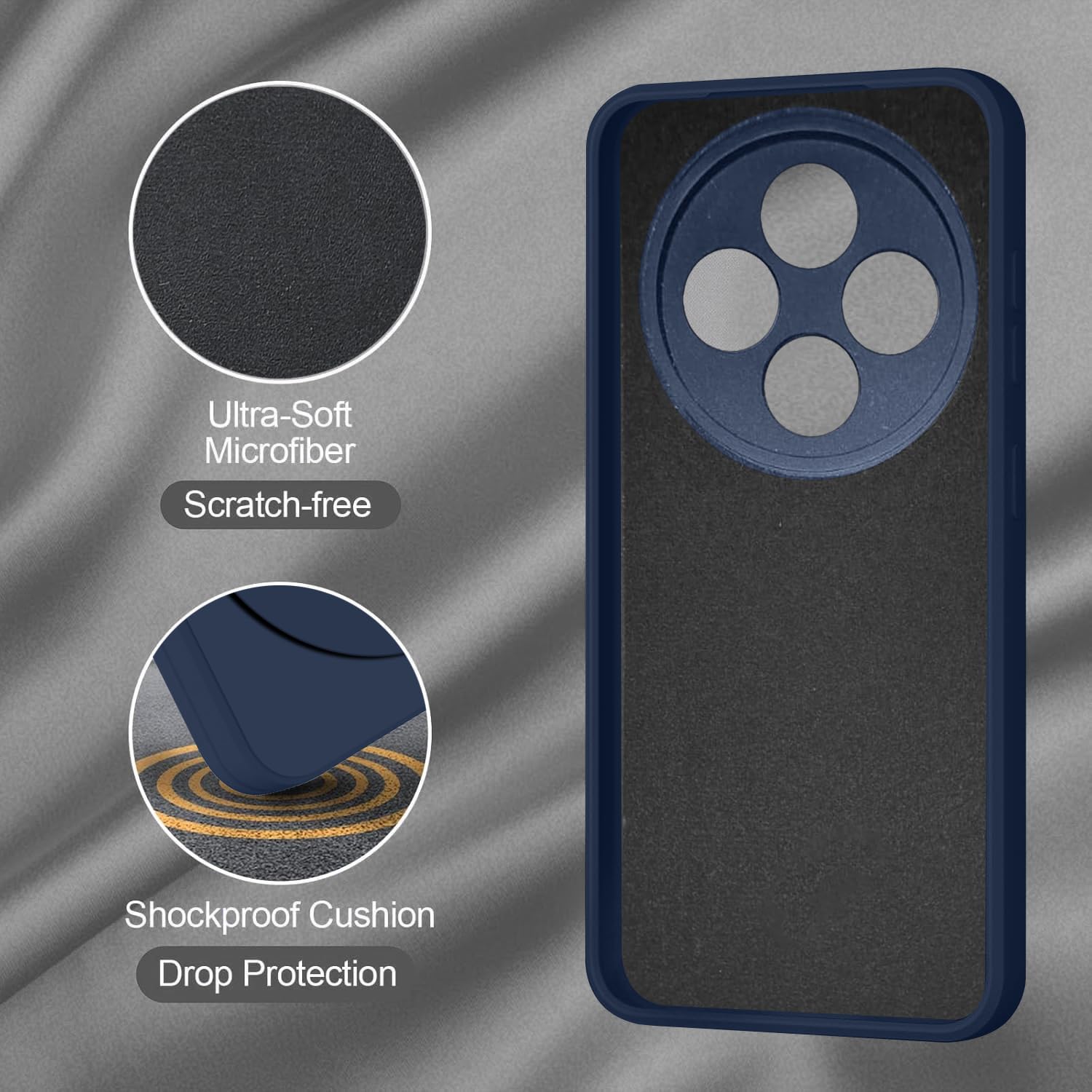 Silicone Back Cover Case for Mi Redmi 14C 5G / Mi A4 5G / Poco C75 5G / Poco M7 5G | Soft Micro-Fibre Lining Inside | Camera Protection Bump | Shockproof Back Cover Case for Redmi 14C 5G (Blue)