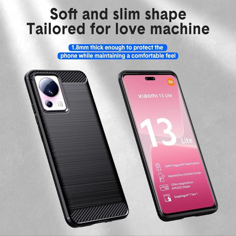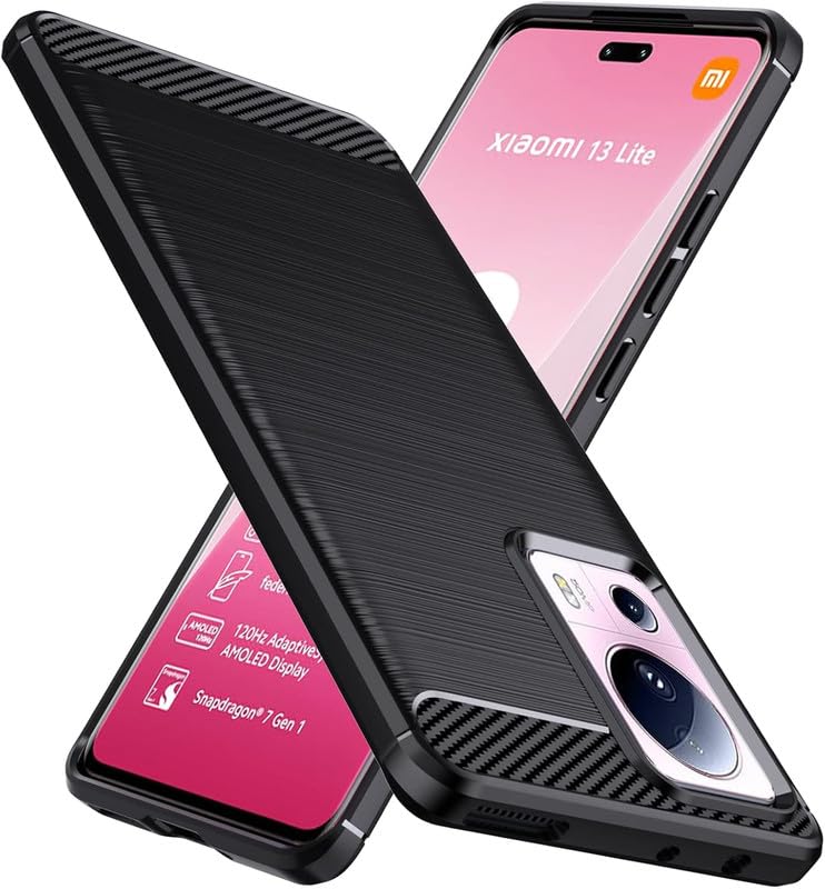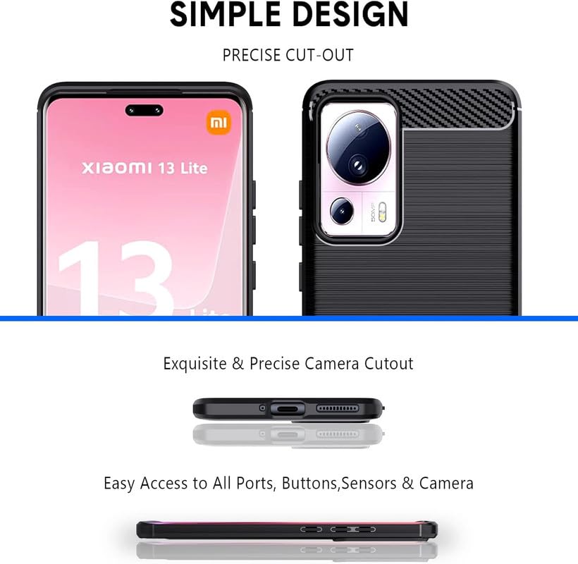 SkyTree Case Compatible with Xiaomi 13 Lite, Perfect Fitting Hybrid Edge to Edge Side Protection Carbon Fiber Back Cover for Xiaomi 13 Lite 6.55" - Black