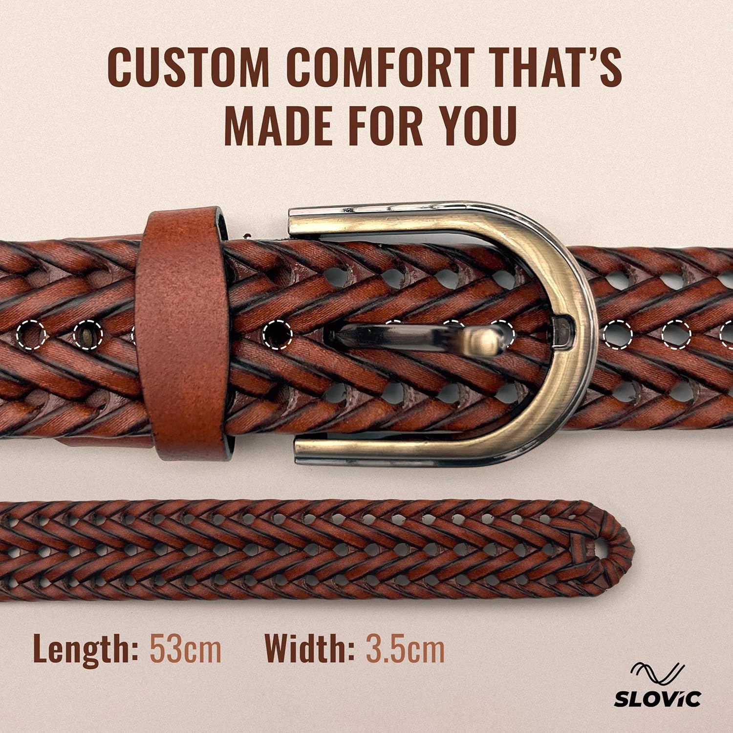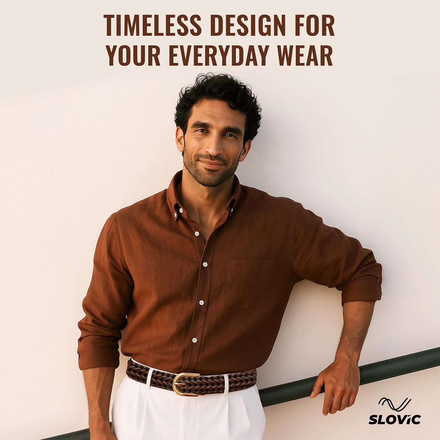 SLOVIC Belts for Men Leather | Premium Woven Design | Multi-Hole Adjustable Belt | Ideal for Jeans, Trousers & Chinos | Stylish Gift for Men