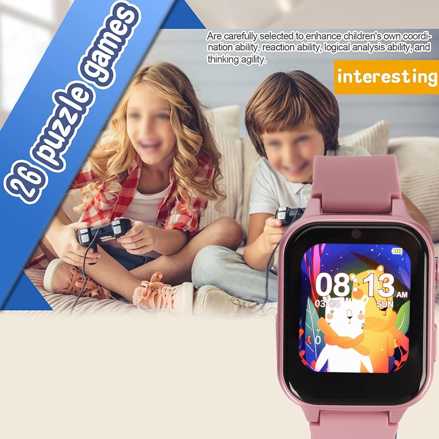 Puzzle Games: This smartwatch integrates a variety of learning games, interesting games for kids to have fun, in which they can effectively exercise their logical thinking ability, ability and hand eye coordination. Suitable for early education.