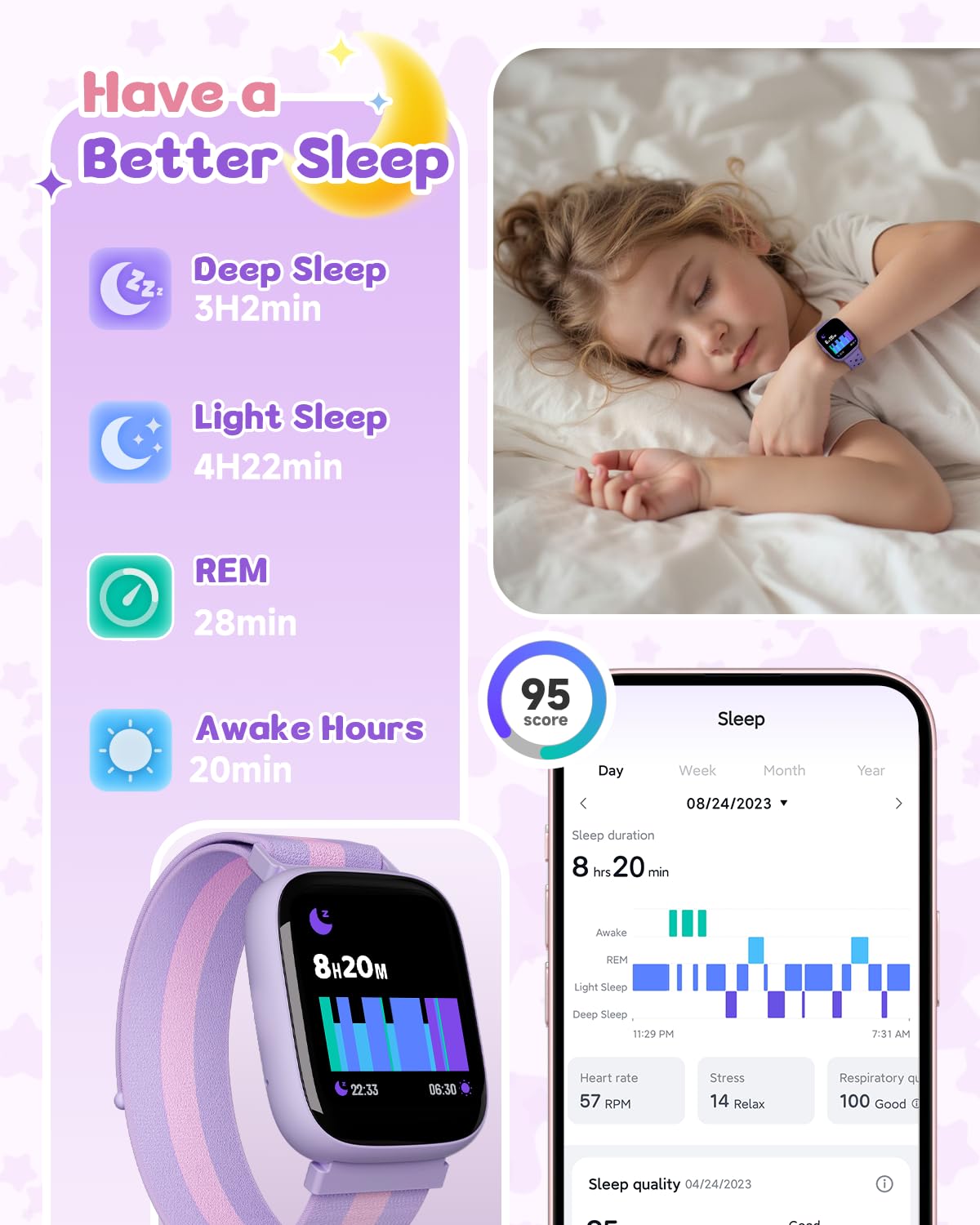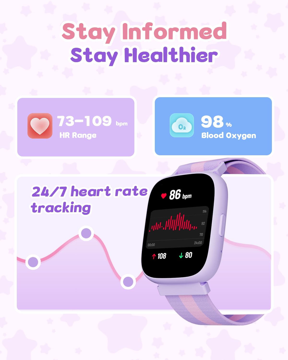 [Comprehensive Fitness & Health Tracking]: Promote your child’s well-being with real-time heart rate monitoring and advanced sleep tracking. The watch analyzes sleep stages (REM, light, deep) to provide insights into sleep quality. Note: Sleep tracking requires more than 3 hours of sleep and long-term wear for accurate results.